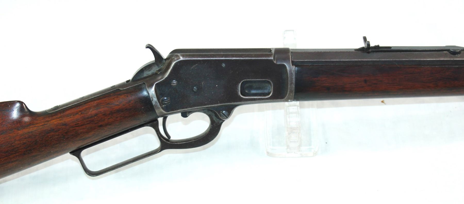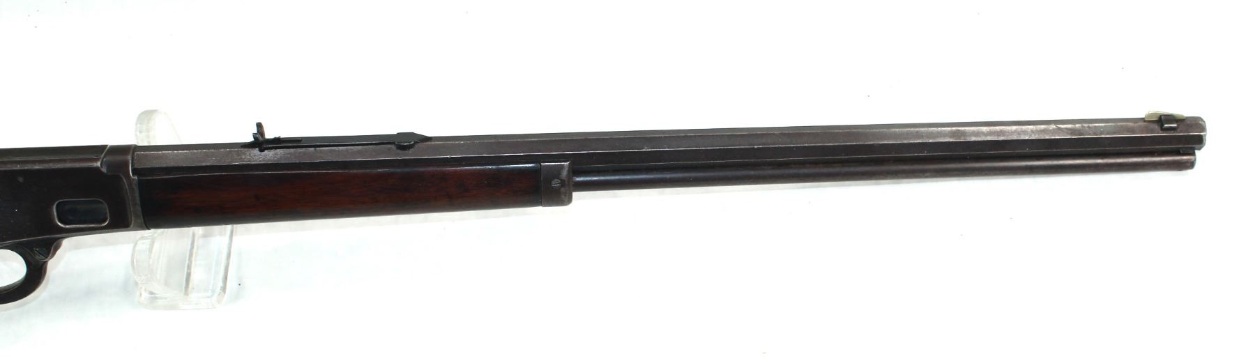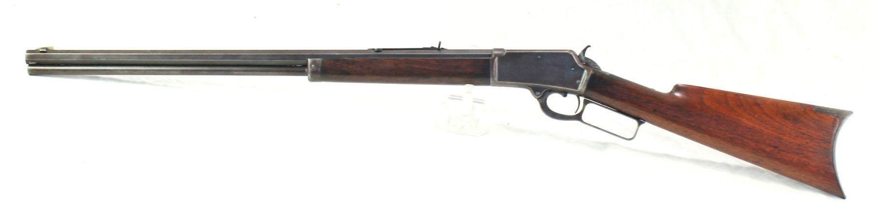 Serial #23820, 32 caliber, A highly collected and hard to find, Antique model 1888 Marlin rifle with its identifying "V" cut top bolt, a 24" octagon barrel, in very nice overall condition with an even patina and blue finish showing through, beautifully fitting wood, cresent buttplate, and smooth action.