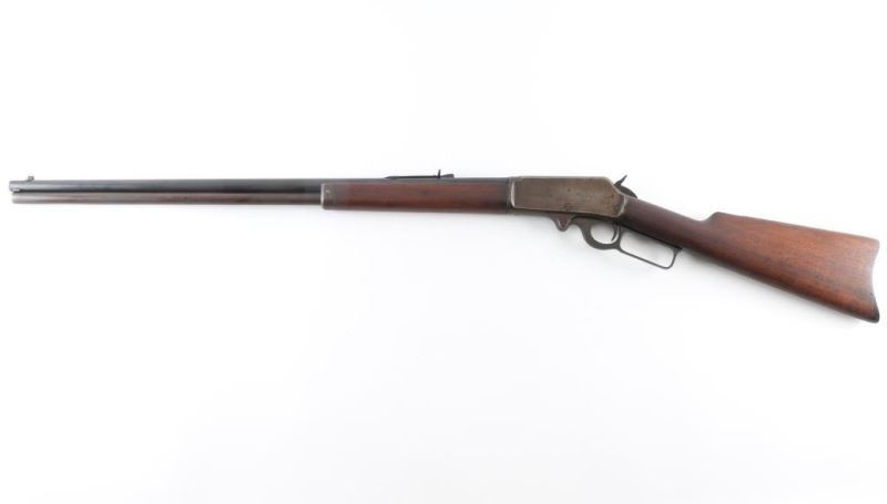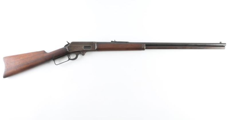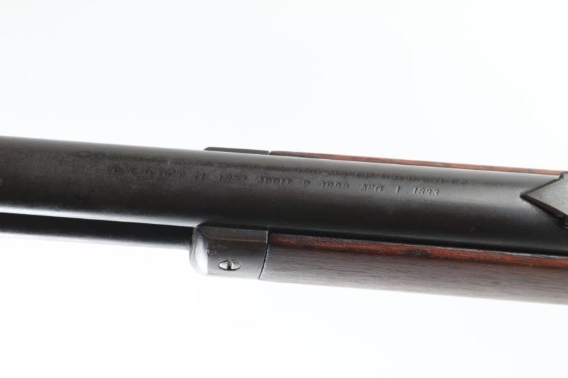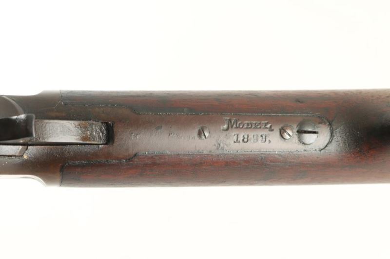 Rifle. Lever-Action. Produced 1893-1935. 26" round barrel. Full length tube magazine. front blade and v-notch Buckhorn rear sights. Tang stamped "Model 1893." Top of receiver stamped "Marlin Safety". Barrel stamped "Special Smokeless Steel" and "25 36 M." (manufactured after 1904) "Marlin Firearms Co. New Haven Ct. U.S.A. Patented Oct.11 1887. April 2 1889. Aug 1 1893." Serial number stamped on underside of receiver. Straight walnut stock with curved steel buttplate. Smooth walnut fore end with steel cap. Receiver drilled/tapped for optics. Bore is dark/dirty with rifling present. Case-hardened receiver, lever, hammer, and buttplate have turned a plum/brown patina. Same with the magazine. barrel has a dull blue/brown patina. Wood is good with a few minor dings/chips. Action is smooth/tight. Needs some TLC. NRA Condition-Good. Modern Firearm.