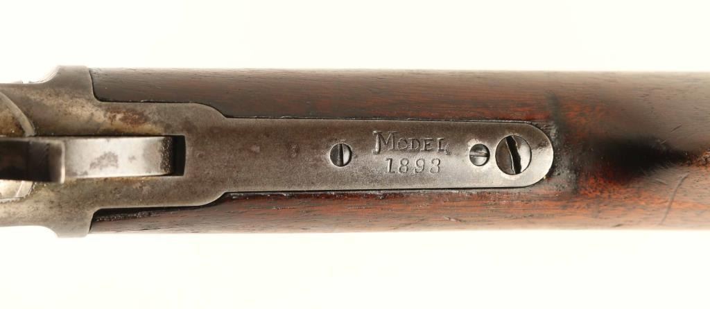 Vintage American made lever action repeating rifle chambered in .32-40 Winchester, manufactured circa 1899. Features a blued 26" octagonal barrel marked 'Special Smokeless Steel', dovetailed blade front sight with bead top, adjustable semi-buckhorn rear sporting sight, full-length tube magazine, smooth trigger, knurled hammer spur, case hardened finger lever, sling swivels, smooth walnut forend with metal cap, and straight grip shoulder stock with crescent metal buttplate. Rifle exhibits traces of it's original finish preserved in the protected areas with the majority of the metal surfaces turned to patina showing some scattered light rust. Action is smooth, the bore is good with some pitting, markings are good and the wood stocks are near good with a 1" crack & small loss on the left side of the wrist. Condition is NRA Good ***C&R Firearm***