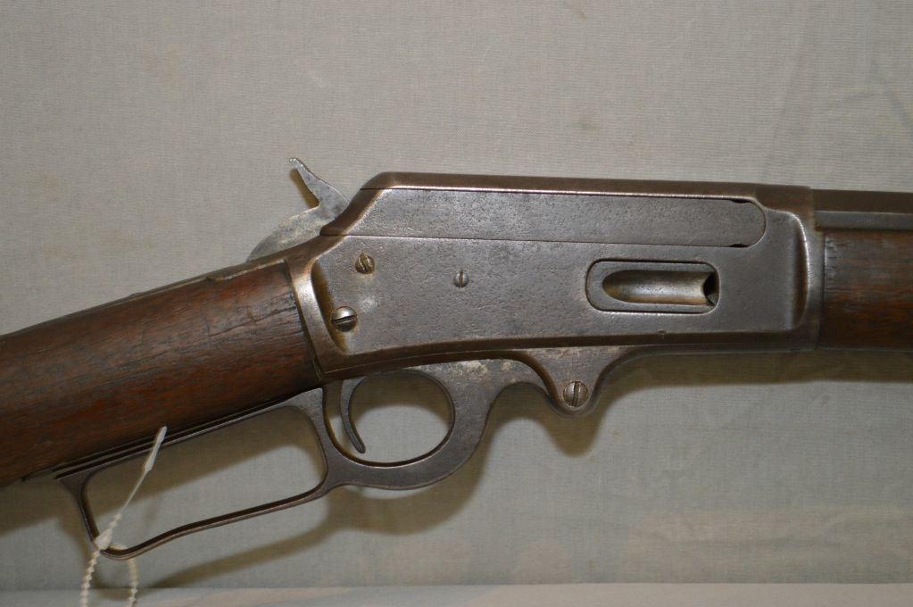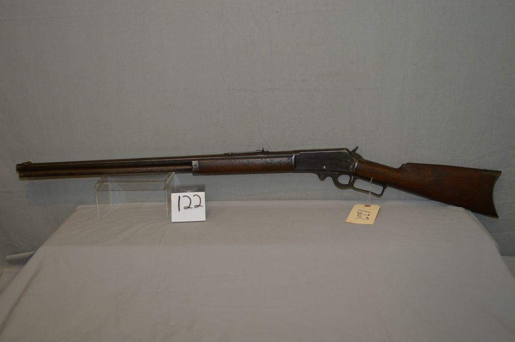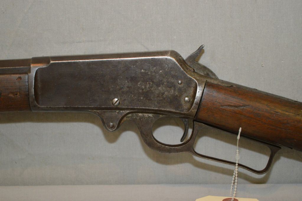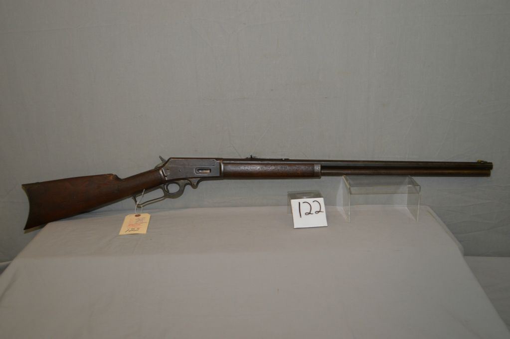 Marlin Model 1893 .38 - 55 cal Lever Action Rifle w/ 26" octagon bbl full mag [ blue finish turning brown with some pitting, traces of flaking case color turned silver on receiver, lever, etc, fair wood w/ marks & gouges, crescent butt plate, wrong back tang screw , too short, causing the stock to be loose, (10 ) ] Ser # 187430