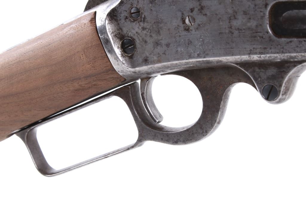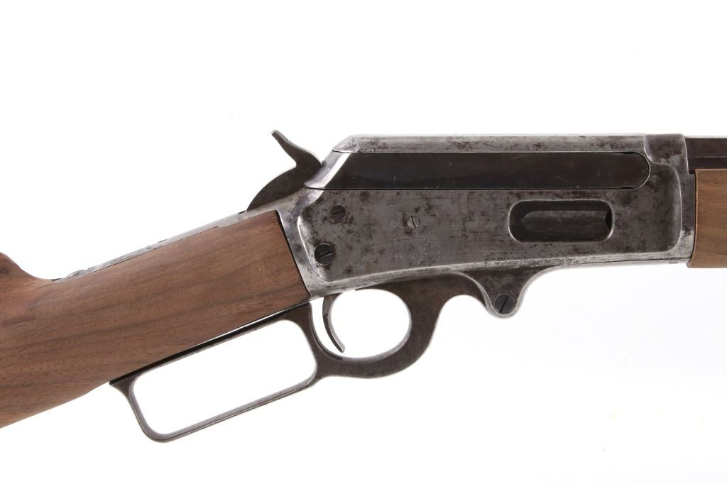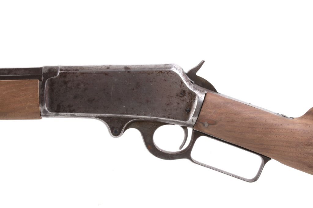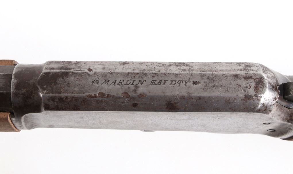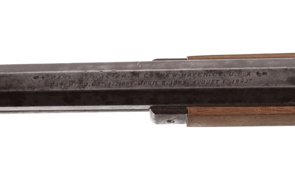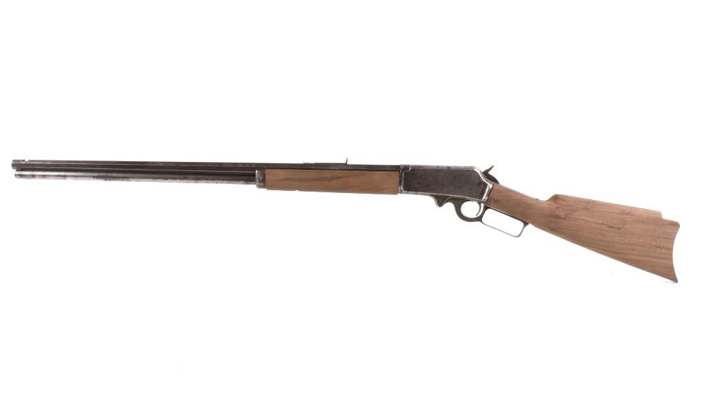 Available in this lot is an early Marlin Model 1893 Lever-Action rifle, chambered in .30-30. The rifle utilizes a 26" full octagon barrel, crescent butt, rear buckhorn rear sight, new walnut fixtures, and a nickel finish. The rifle reads "Marlin Fire-Arms CO. New Haven. CT, U.S.A. - Patented, OCT. 11. 1887. APRIL 2. 1889. AUGUST 1. 1893", on the top of the barrel, "Marlin Safety" on the top of the receiver, “Model 1893” on the tang and showing the serial number on the bottom of the frame. Overall, the rifle shows fair condition, with a nice patina to the finish, and nice new walnut fixtures. The action is smooth, and strong rifling with a manufacture date of 1895. Serial Number: 129978. This firearm qualifies as an Antique, and does not require FFL Transfer or NICS Background Check.