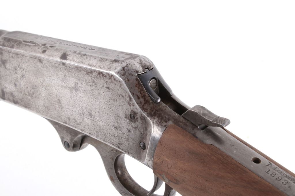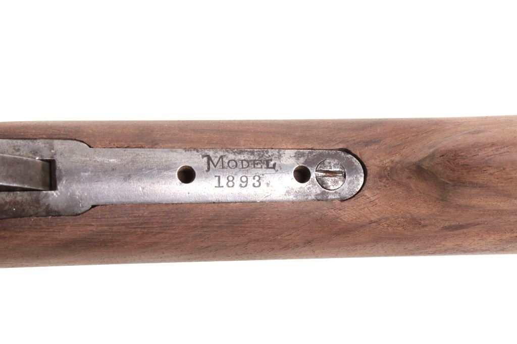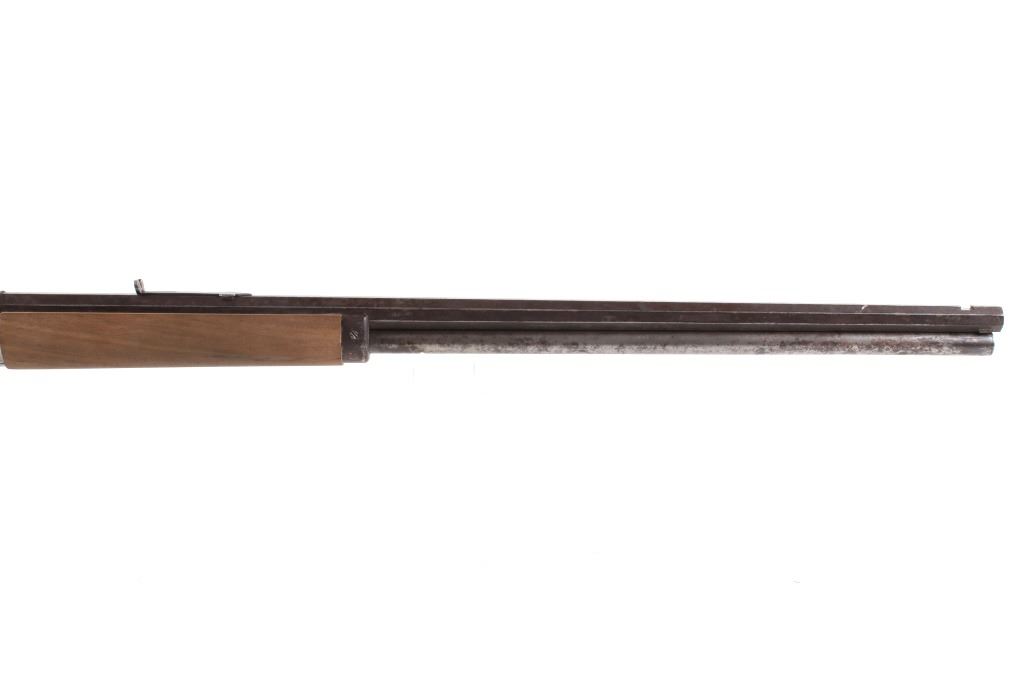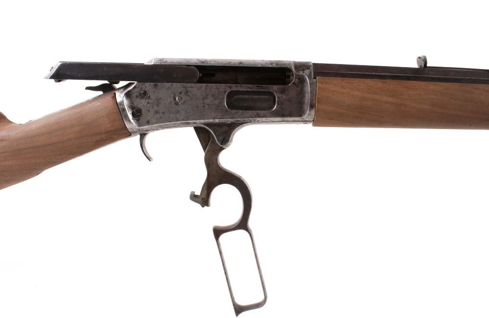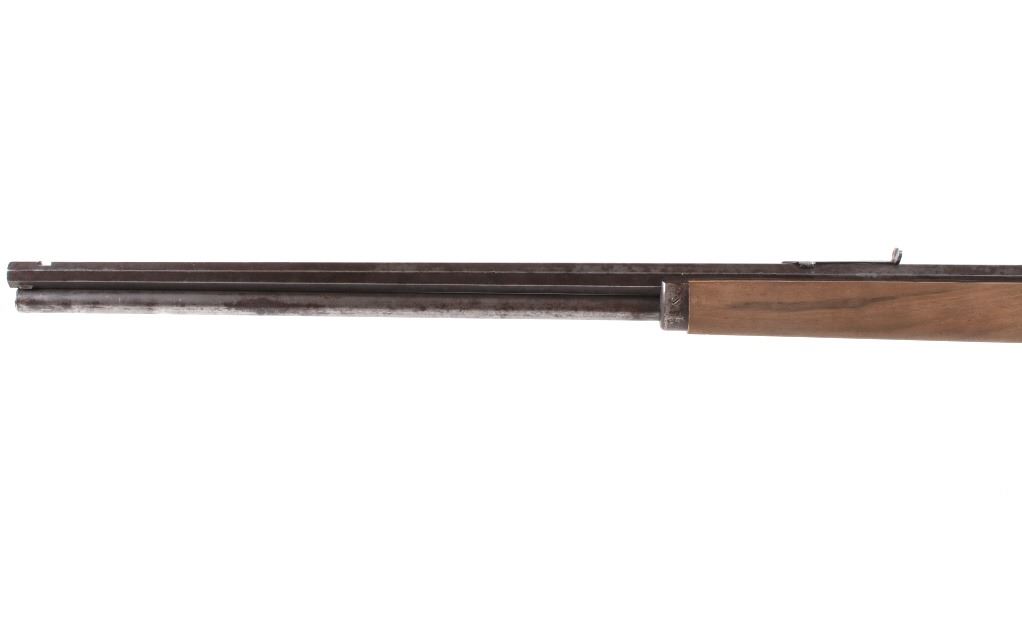 Available in this lot is an early Marlin Model 1893 Lever-Action rifle, chambered in .30-30. The rifle utilizes a 26" full octagon barrel, crescent butt, rear buckhorn rear sight, new walnut fixtures, and a nickel finish. The rifle reads "Marlin Fire-Arms CO. New Haven. CT, U.S.A. - Patented, OCT. 11. 1887. APRIL 2. 1889. AUGUST 1. 1893", on the top of the barrel, "Marlin Safety" on the top of the receiver, “Model 1893” on the tang and showing the serial number on the bottom of the frame. Overall, the rifle shows fair condition, with a nice patina to the finish, and nice new walnut fixtures. The action is smooth, and strong rifling with a manufacture date of 1895. Serial Number: 129978. This firearm qualifies as an Antique, and does not require FFL Transfer or NICS Background Check.