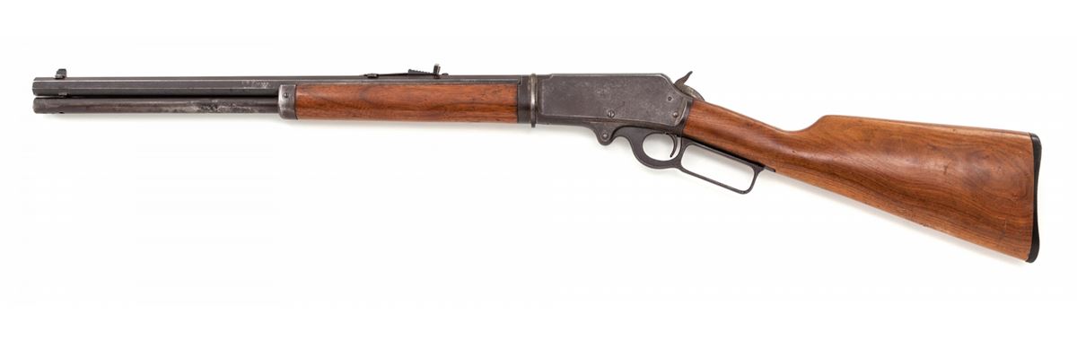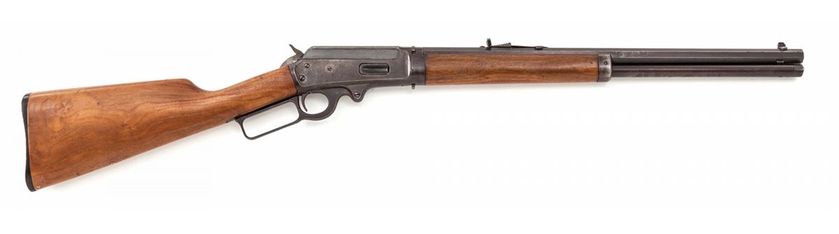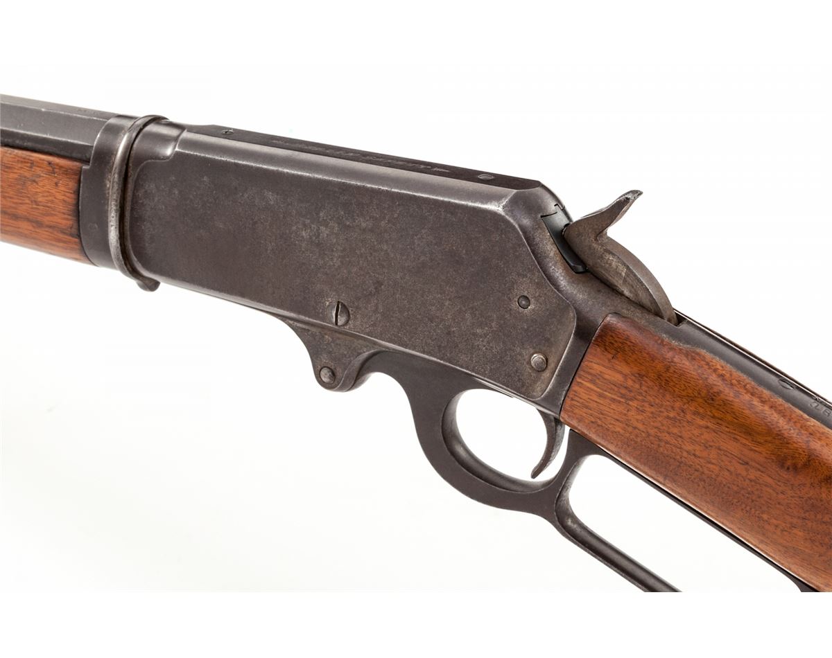 Marlin Model 1893 Takedown Lever Action Rifle, #264510, .30-30 cal., 20'' octagonal barrel, blue and case hardened finish, walnut stock and forend. Mfg'd 1903. Condition is very good retaining approx. 60% thinning and moderately toning finish; case hardened frame has turned a silvery gray with vivid colors in protected areas. Buttstock appears to be a later Marlin replacement with sling swivel eyelet holes plugged. Action remains crisp, bore is fine. Est.: $500-$750. (C&R)