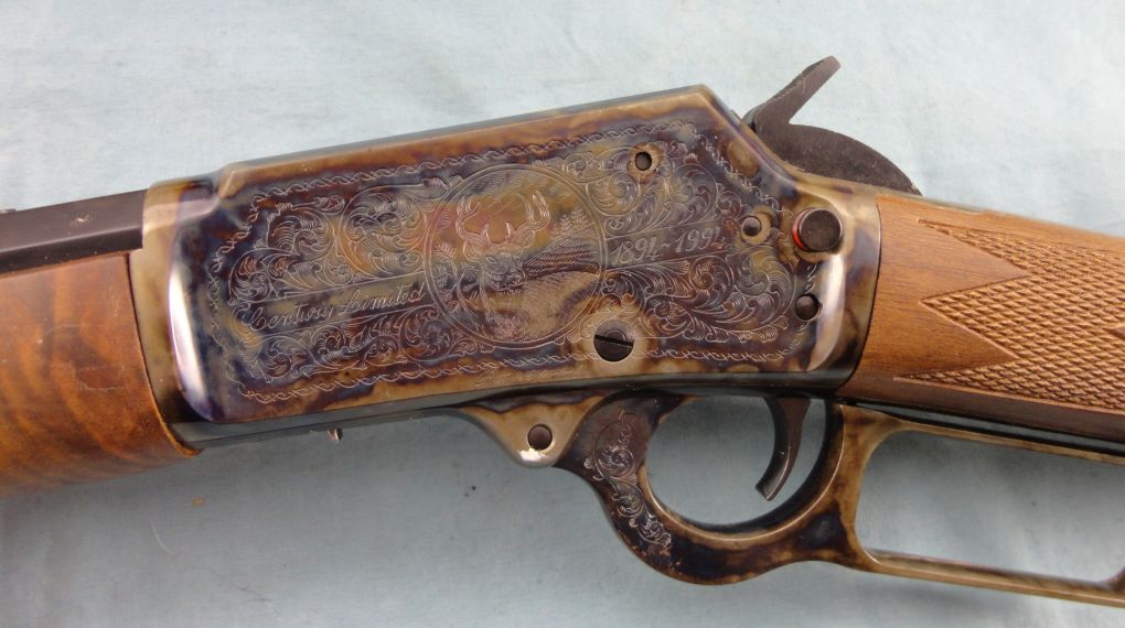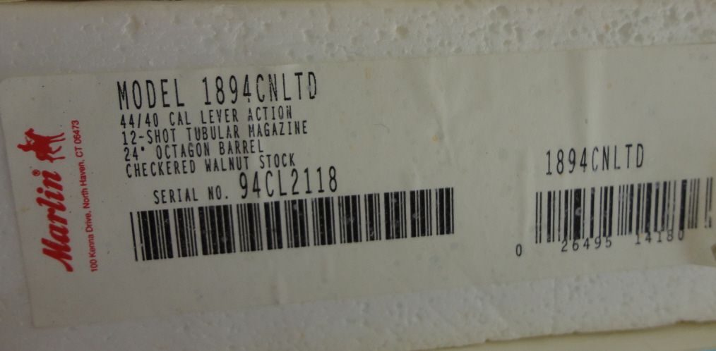 #94CL2118; 44-40. 24" oct. bbl. blued finish w/ case colored engraved receiver. Fancy checkered walnut stock. Condition is as new in box w/paperwork. Made to commemorate the Model 1894 & production was limited to only 2,500 rifles.