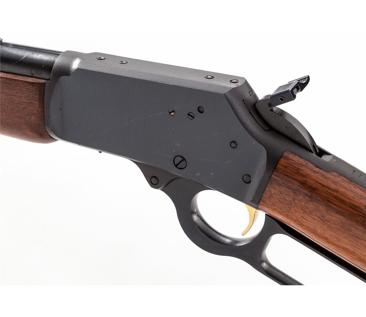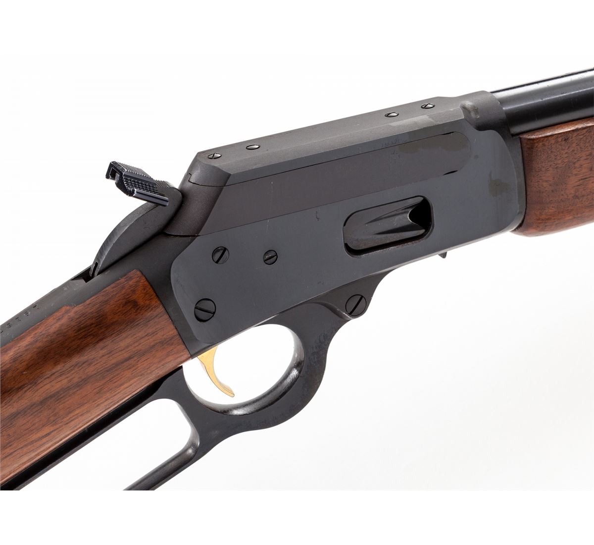 Marlin Model 1894 Lever Action Carbine, #19163884, .357 mag. cal., 18'' barrel, blue finish, walnut stock and forend. Condition is fine to near excellent retaining approx. 97% blue, with light just starting corrosion to barrel. Stock with light handling marks. Action is crisp, bore is bright. Est.: $500-$750. (Modern)