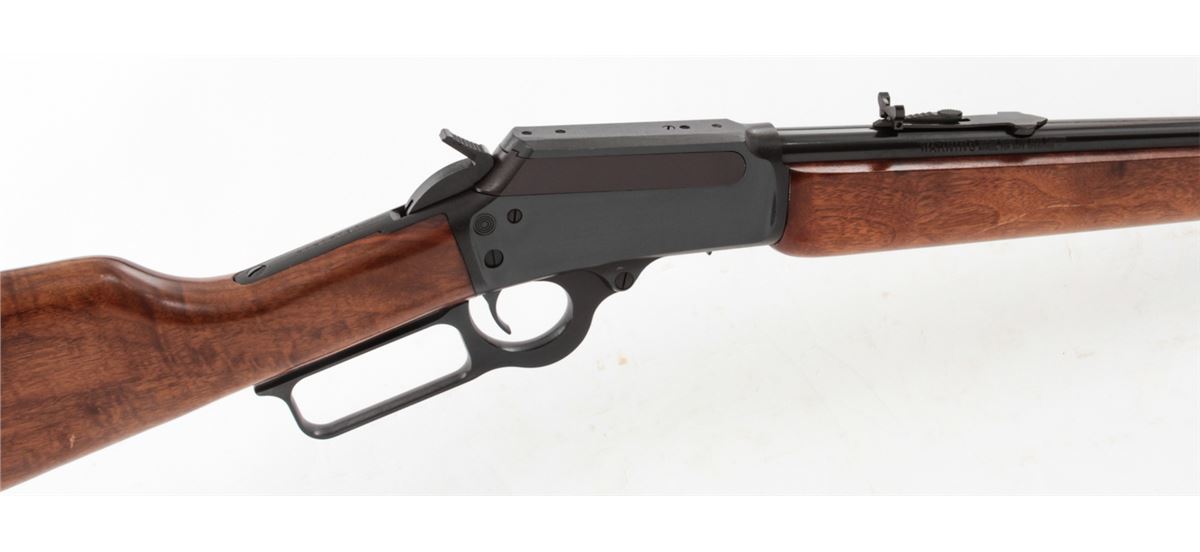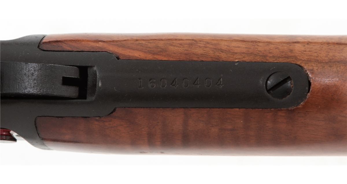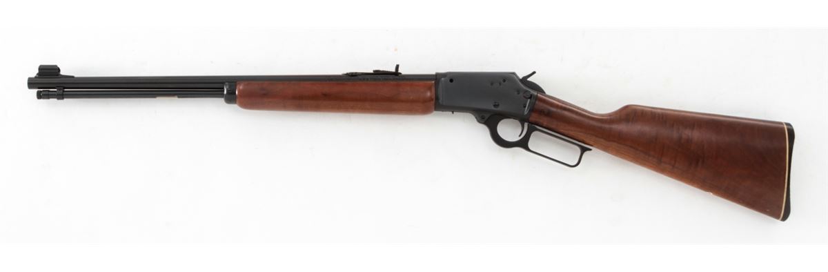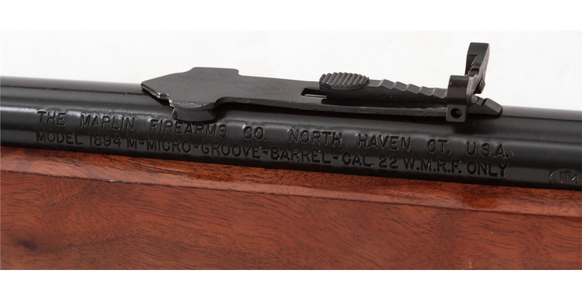Marlin Model 1894M Lever Action Rifle, #6040404, .22 mag. cal., 20'' barrel, blue finish, smooth walnut stock and forend. Condition is excellent showing light scratches to receiver. Stock with minor handling marks. Good action, bright bore. Est.: $250-$450. (Modern)