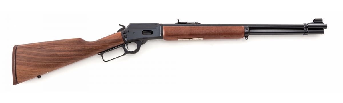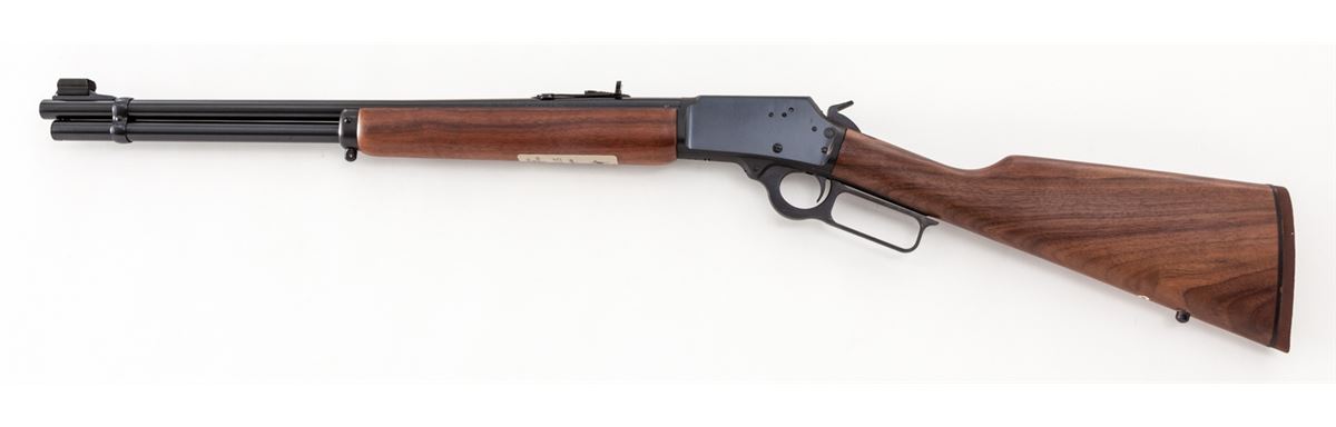 Marlin Model 1894S Lever Action Rifle, #44400400, .44-40 cal., 20'' micro-groove barrel, blue finish, smooth walnut stock and forend, Marlin hard rubber buttplate, adjustable semi-buckhorn rear sight, hooded front sight, in original box with matching end label and owner's manual. Condition is excellent overall, appearing near new, the barrel with one small scratch in front of barrel address; receiver with one small scratch near safety. Forearm with the original Marlin sticker intact. Est.: $500-$700. (Modern)
