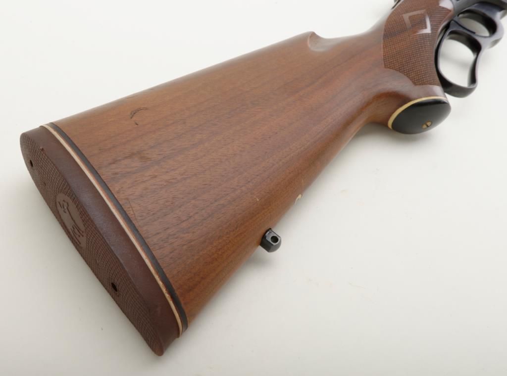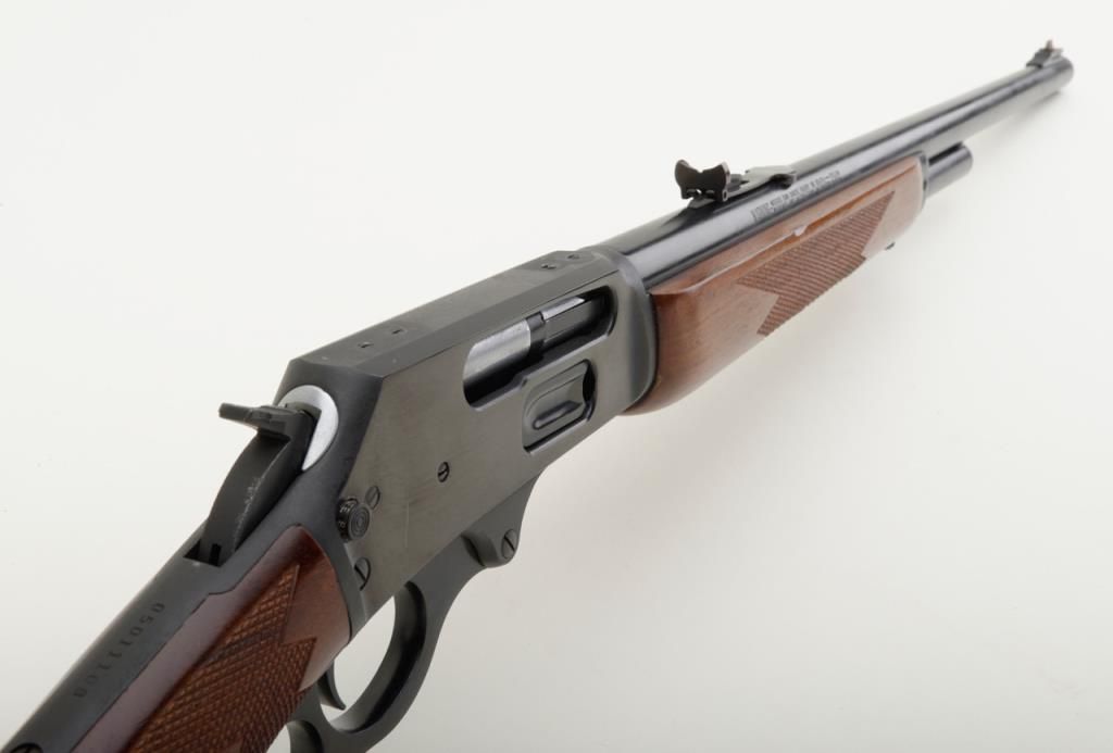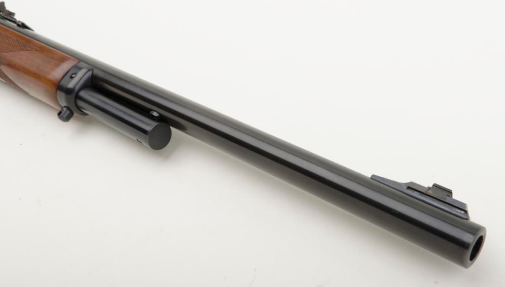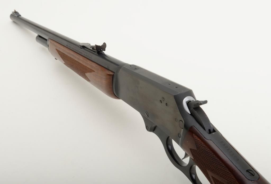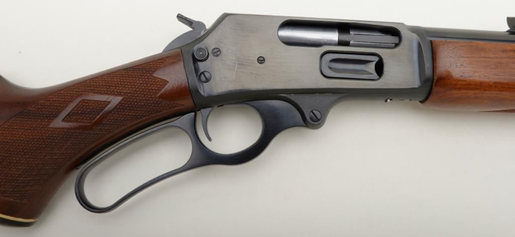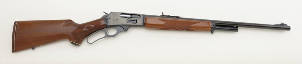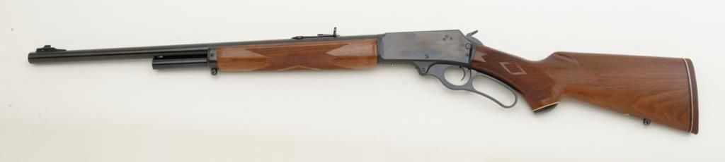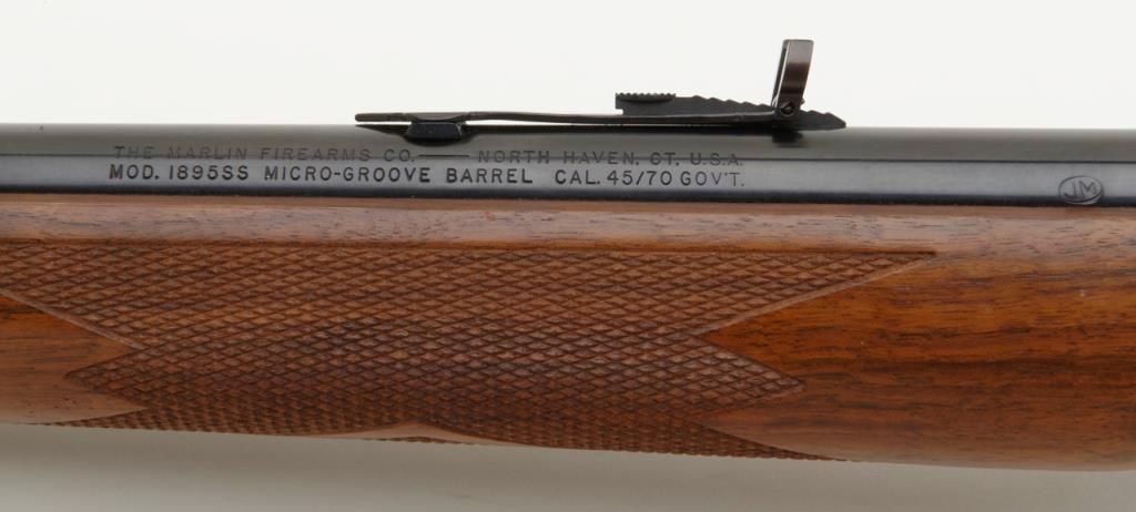 Marlin Model 1895, .45-70 caliber lever action rifle in fine to near excellent used condition, serial number 05011108. The rifle retains 98% plus original blue with just a couple of minor scratches and very little use. The stocks also are near excellent and show addition of studs for sling swivels. Est.: $300-$600