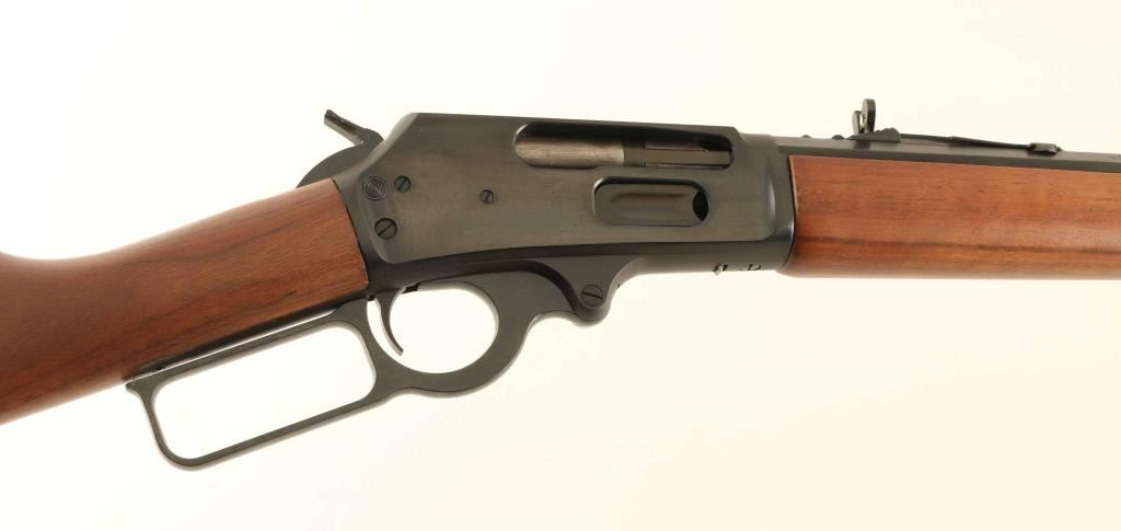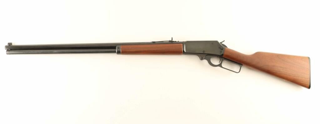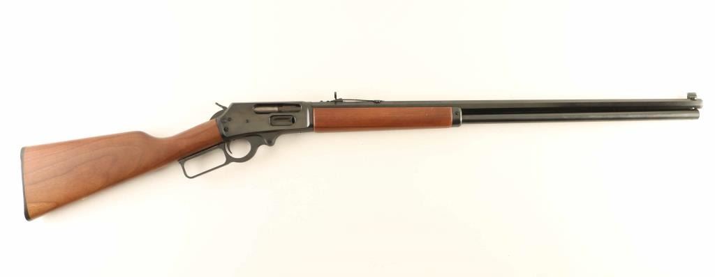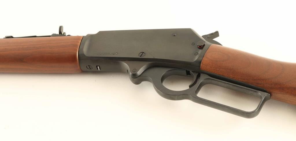 American made lever action repeating rifle chambered in .45-70 Government, manufactured circa 2008. Features a blued finish, "JM" stamped 26" octagonal barrel, full length 9-shot tubular magazine, large dovetailed blade front sight with brass bead, adjustable semi-buckhorn rear sight, factory drilled & tapped steel receiver, smooth trigger, serrated hammer spur, push button cross-bolt safety, grip safety, smooth American walnut forend with metal cap, and straight grip shoulder stock with factory buttplate. Rifle exhibits approximately 99% of it's original finish showing only light handling marks with no major wear observed. Action is smooth, the bore is excellent and the wood stocks are fine. Condition is near NRA Perfect. ***Modern Firearm***