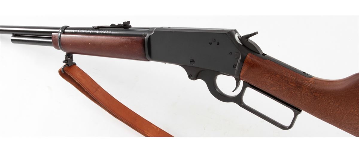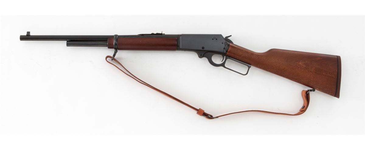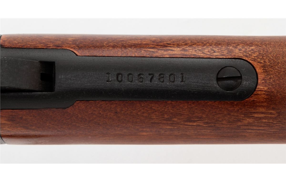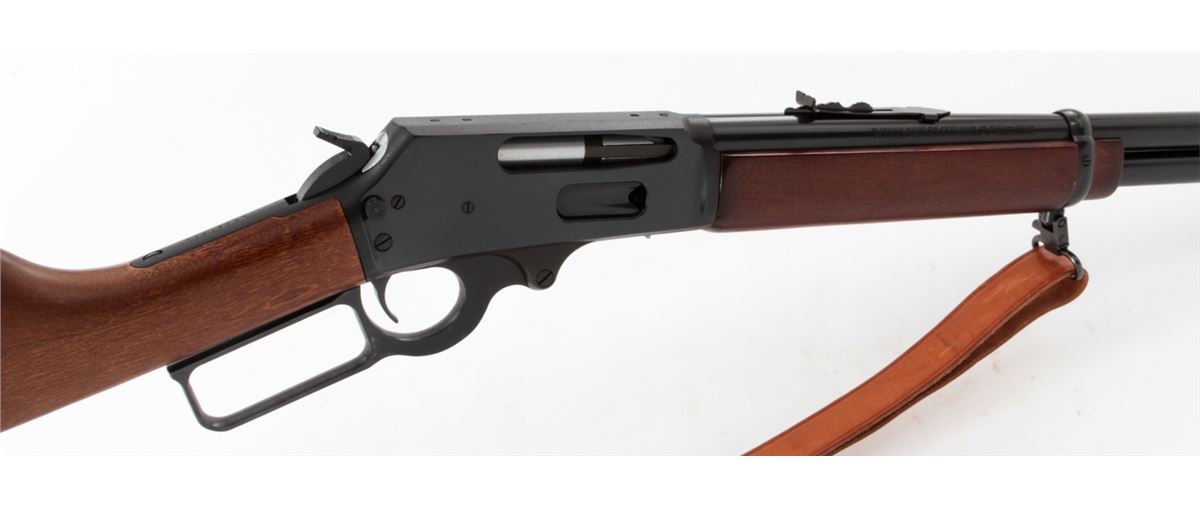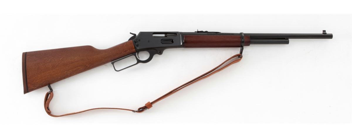 Marlin Model 30TK Lever Action Carbine, #10067801, .30-30 cal., 18'' barrel, blue finish, dark stained birch stock and forend, and Marlin leather sling. Condition is excellent, appearing near new, showing only light marks from handling. Est.: $250-$450. (Modern)