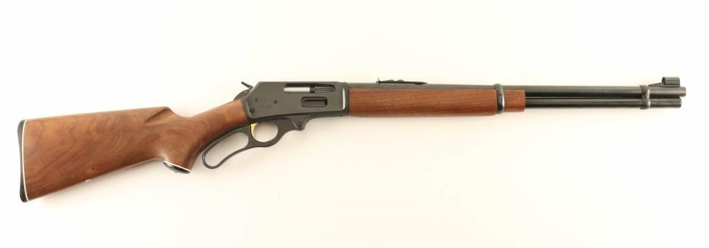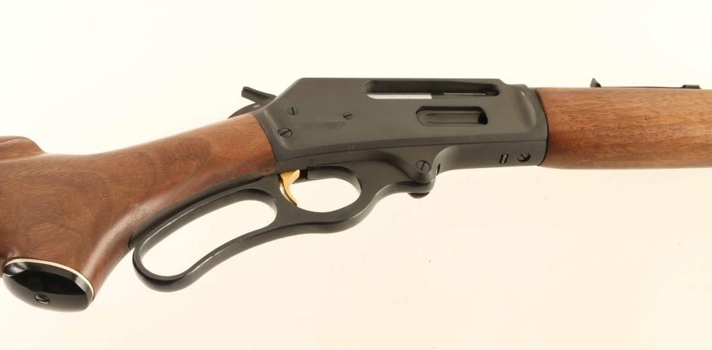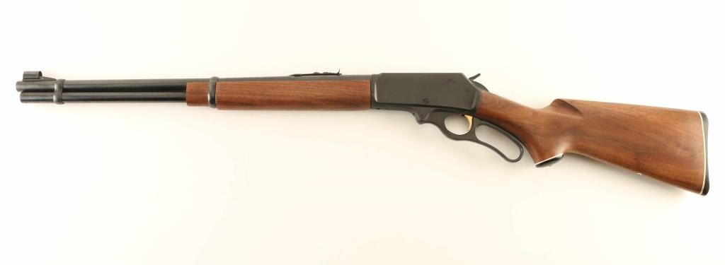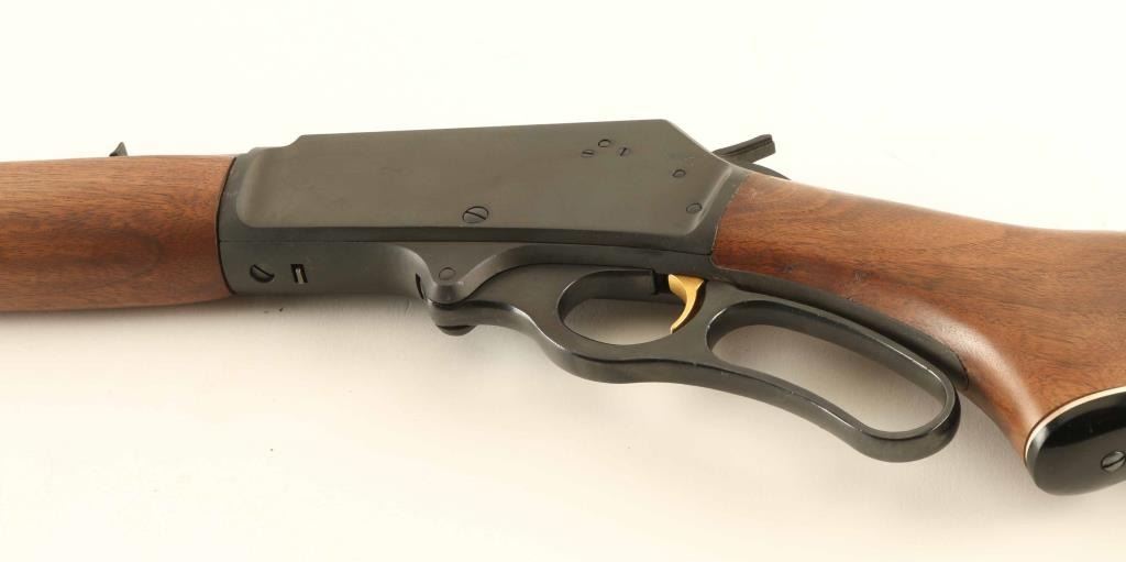 Vintage American made lever action repeating rifle chambered in .30-30 Winchester, manufactured circa 1967. Features a blued finish, "JM" marked 20" tapered barrel, full-length magazine tube, ramped & hooded blade front sight with bead top, adjustable rear sporting sight, two barrel bands, round bolt, smooth gold trigger, serrated hammer spur, grip safety, curved finger lever, factory drilled & tapped receiver, smooth walnut semi-beavertail forend, and pistol grip shoulder stock with inlayed bulls-eye, black grip cap & factory buttplate. Rifle retains approximately 95% of it's original blued finish showing scattered scratches and light surface rust. Action is smooth, the micro-groove appears excellent but is dirty and the wood stocks are very good with some blemishes. Condition is near NRA Very Good. ***Modern Firearm***