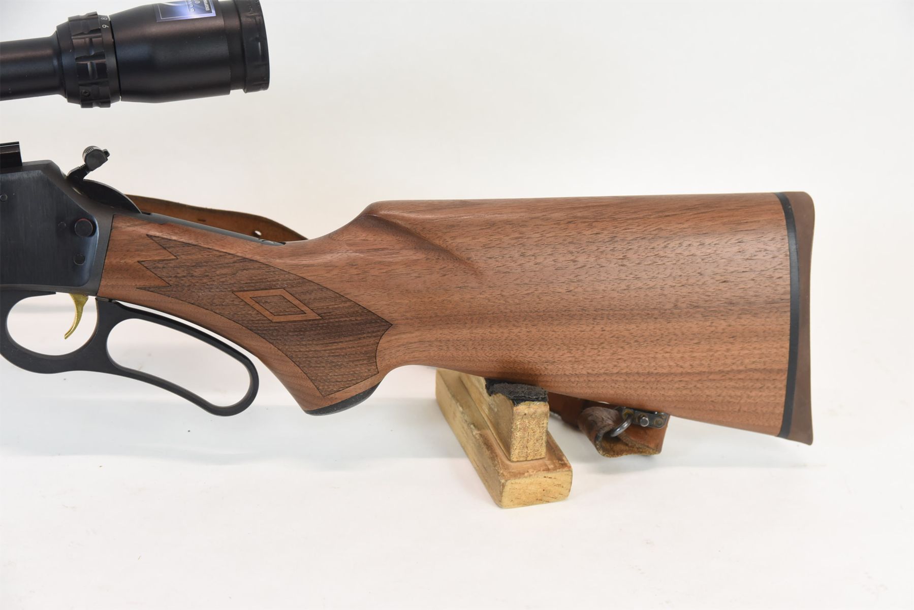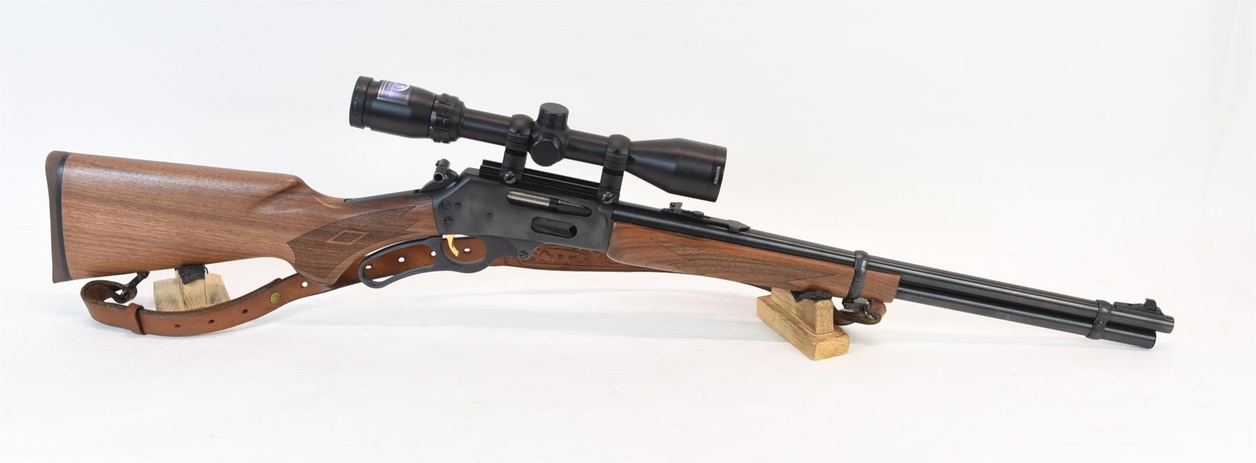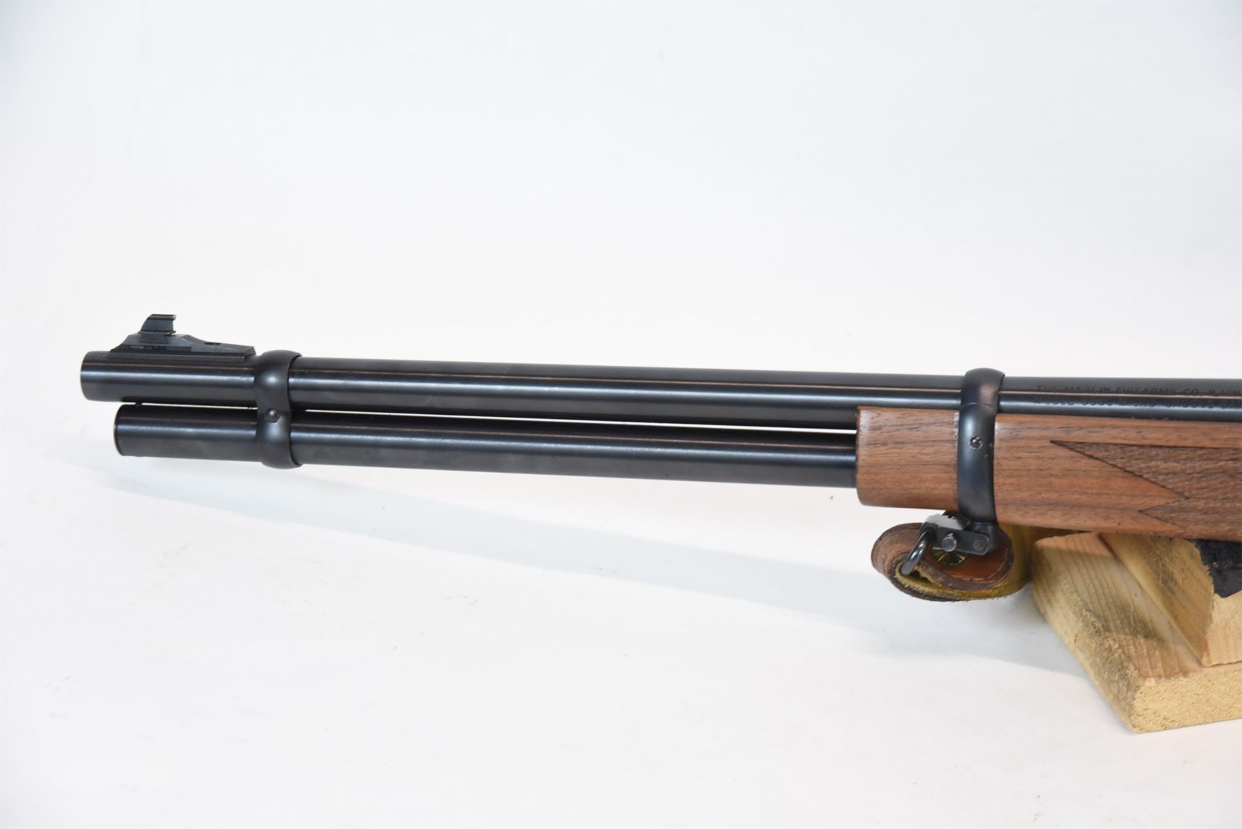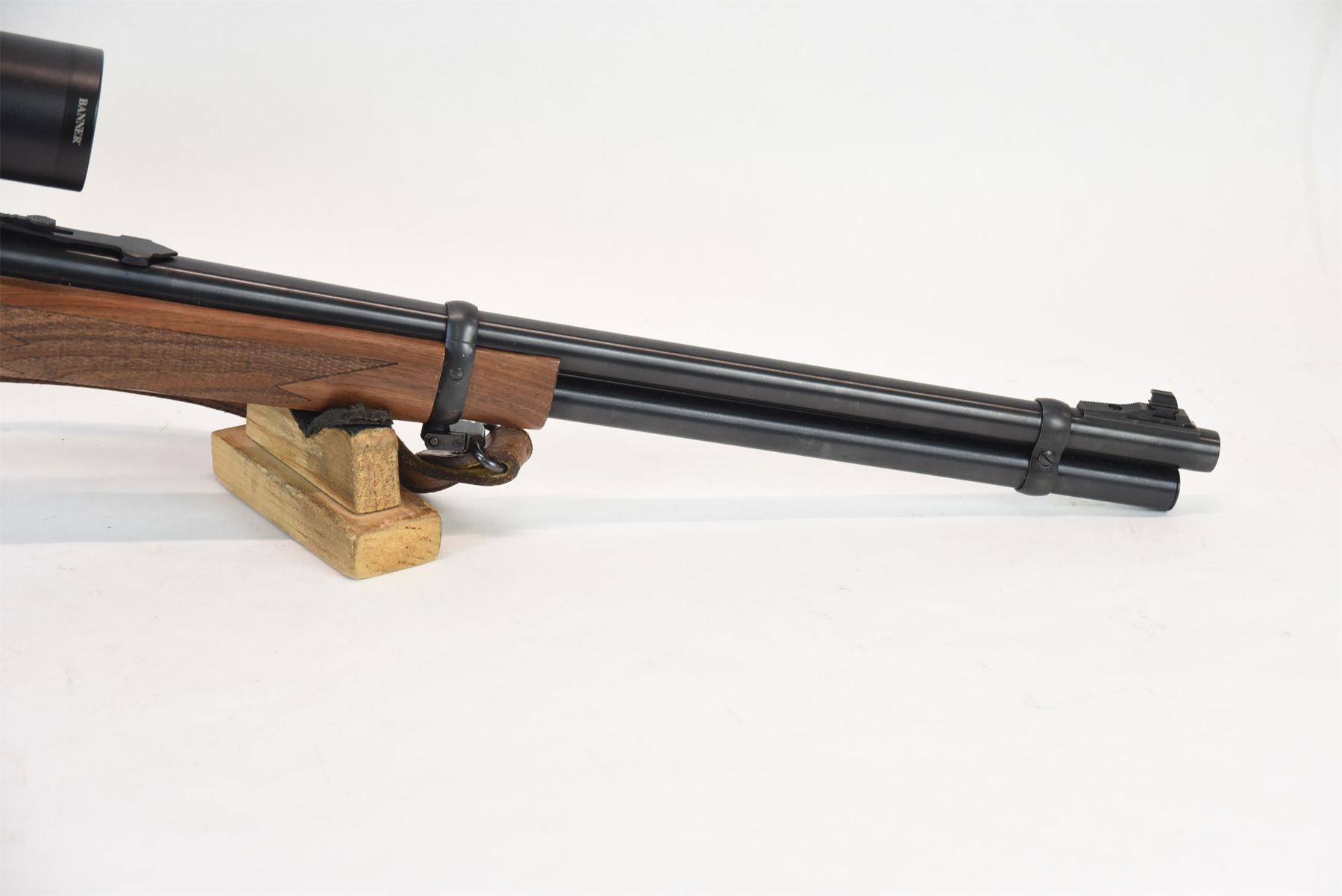 The wood has just a very few very light marks on the butt stock. The bluing is near excellent. The bore is excellent. Has a leather sling and hammer extension.
