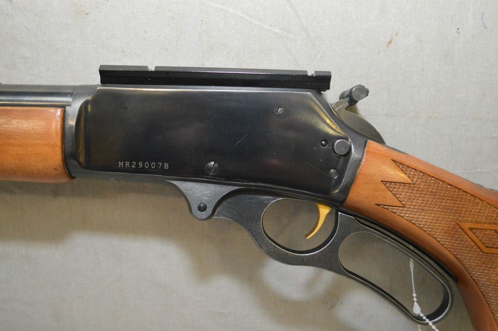 Marlin Model 336W .30 - 30 Win Cal Lever Action Rifle w/ 20" bbl [ blued finish, barrel sights, also fitted w/scope base, checkered pistol grip stock & forend with slight pressure crack by front swivel, hammer spur release, Winchester nylon cartridge holder, quick off swivels ] Ser # MR29007B