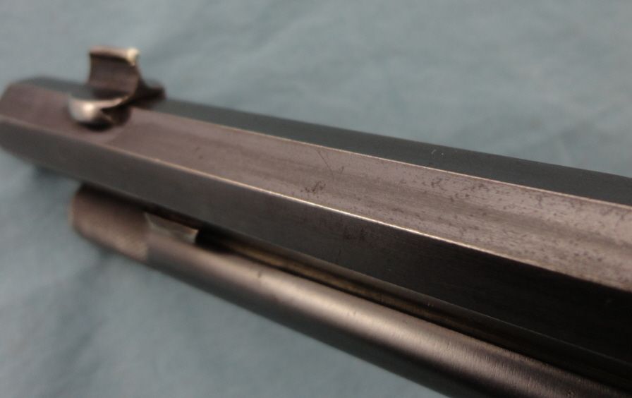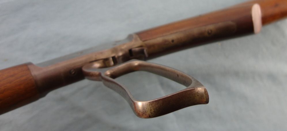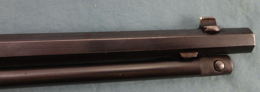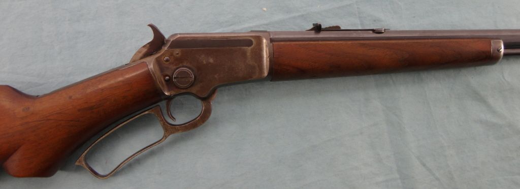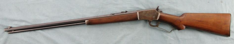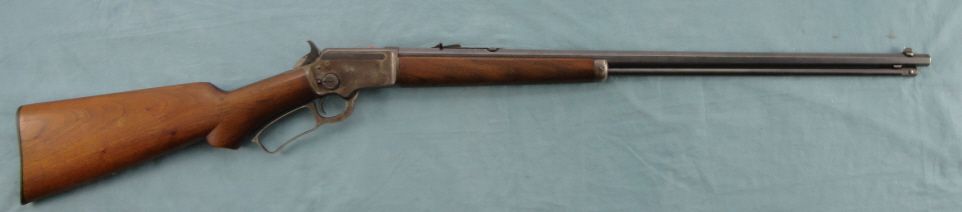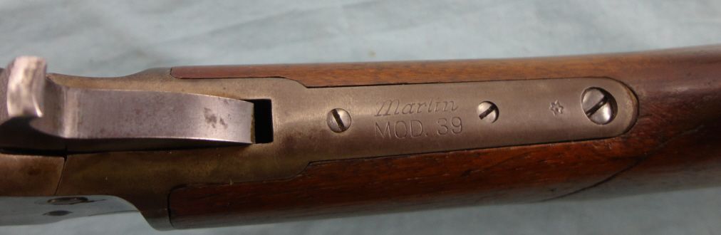 #S10867;.22 cal. 24" oct. blued bbl. w/good bore. Action is crisp & good blue remains on bbl fading on edges. Case color on receiver fading to grey. Nice original stock w/typical scratches from age & use. this early model has KNURLED latch release. Mfg. 1922-1939 before the model was switched to 39A. This gun is complete w/Star on rear tang which considered high grade guns by factory inspectors. "S" prefix on serial # denotes manufactured prior to 1932. A fine early 39 Marlin.