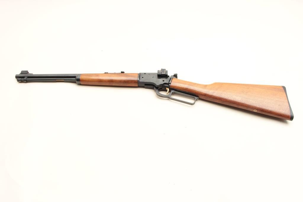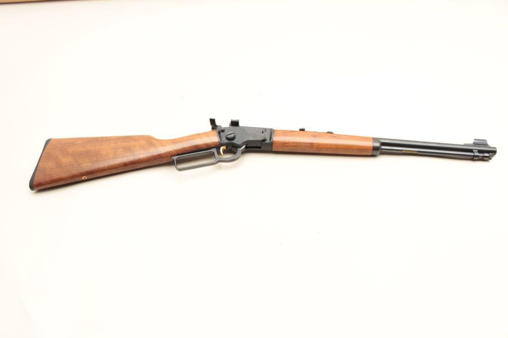 and LR caliber, 16.5” barrel, blued finish, wood stocks, S/N TDS00985, in near new condition with factory soft carry boot. (Modern). Est.: $300-$600.