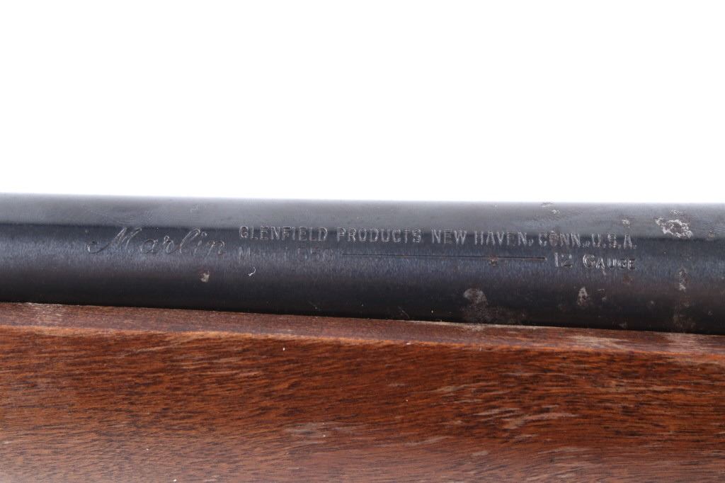 For your consideration is a Marlin Model 55 Glenfield 12 gauge bolt action shotgun. The Model 55G (Glenfield) was produced between 1961 and 1965. This shotgun shows very good condition and utilizes a 28” round blue’d barrel chambered in 12 gauge. This bolt action shotgun is fed with a removable factory magazine. The barrel is stamped near the receiver reading “Marlin Glenfield Products New Haven, Conn. U.S.A. Model 55G – 12 Gauge”. The shotgun is fit with a walnut hardwoods stock which is in good condition showing only usual handling marks. The buttplate is missing. No Serial Number. This firearm qualifies as a Curio & Relic, and requires FFL Transfer or NICS Background Check.