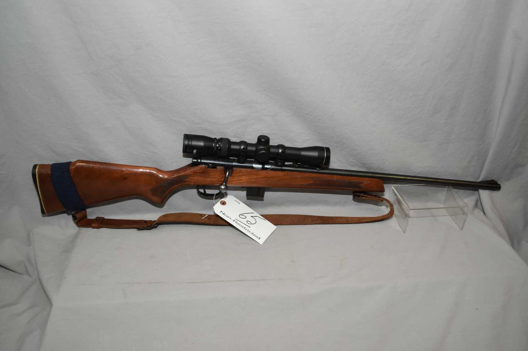 Marlin Model 782 .22 Win Mag Cal Mag Fed Bolt Action Rifle w/ 22" bbl [ blued finish starting to fade, barrel sights, also fitted w/ Tasco 3 x 9 Variable scope, pressed checkered pistol grip stock & forend with leather sling, swivel protector, Marlin butt plate ] Ser # 18652427