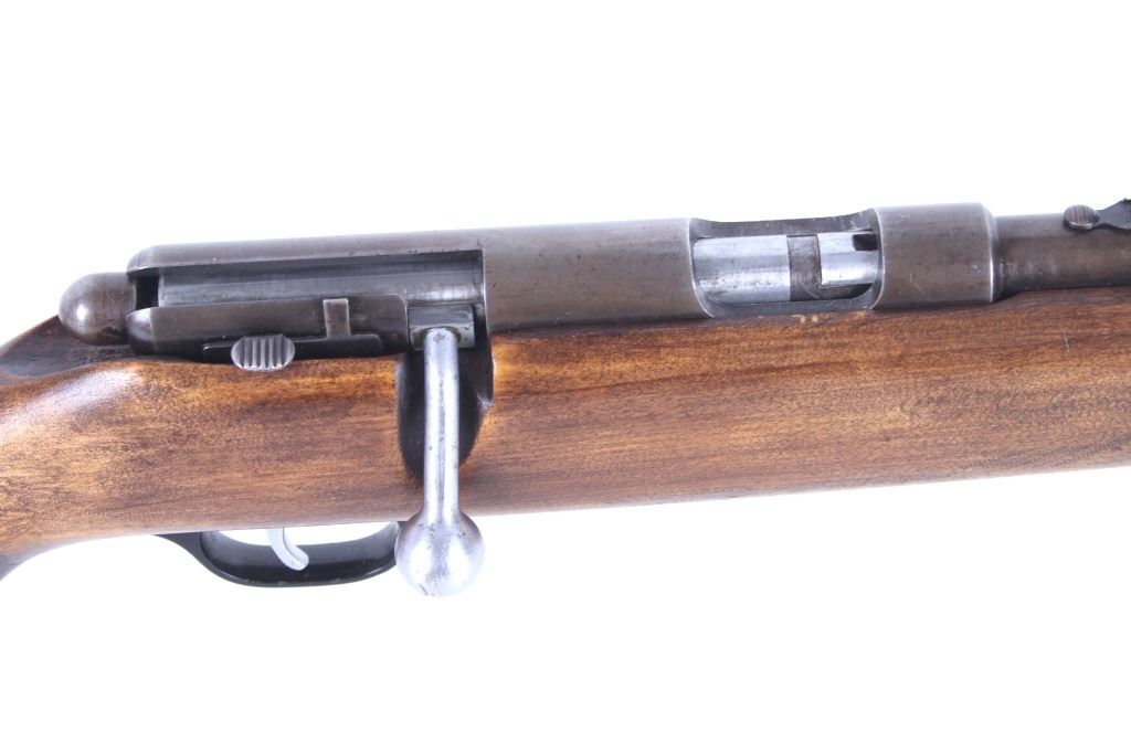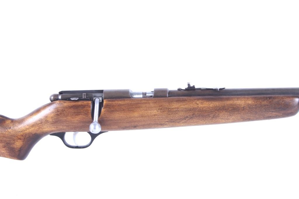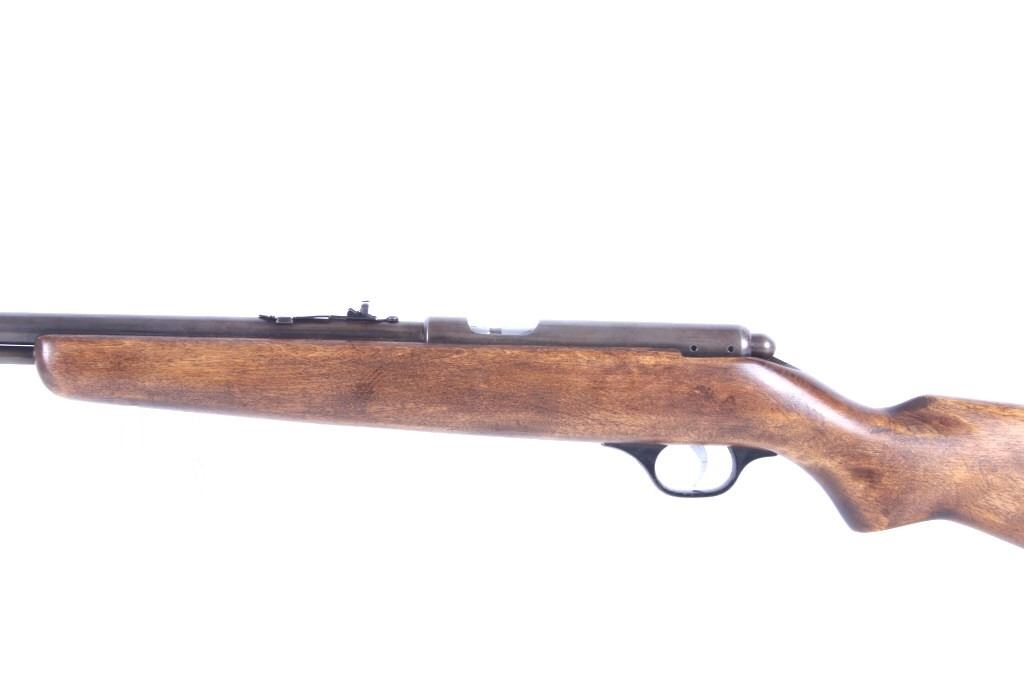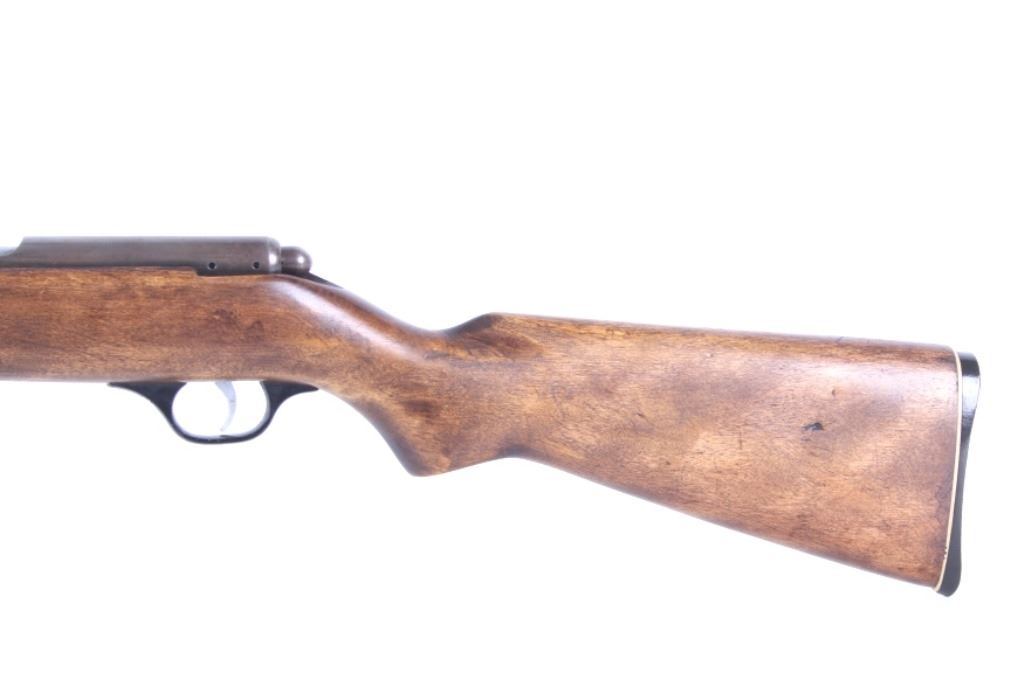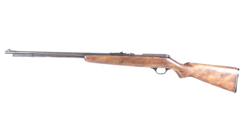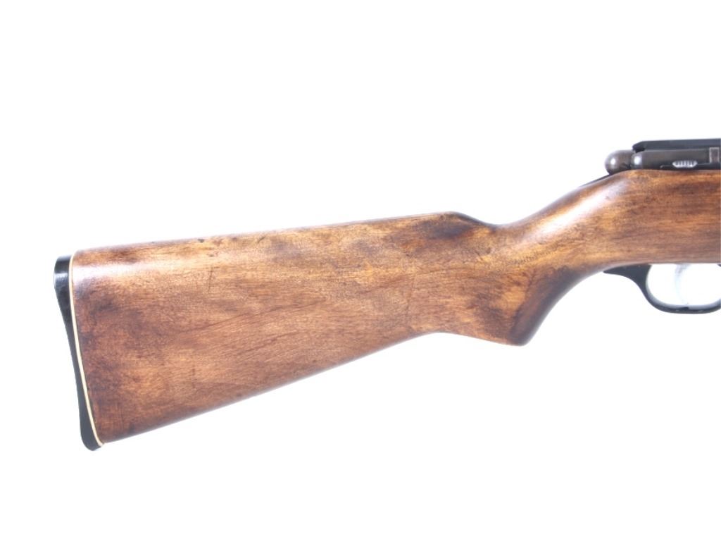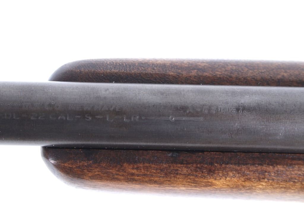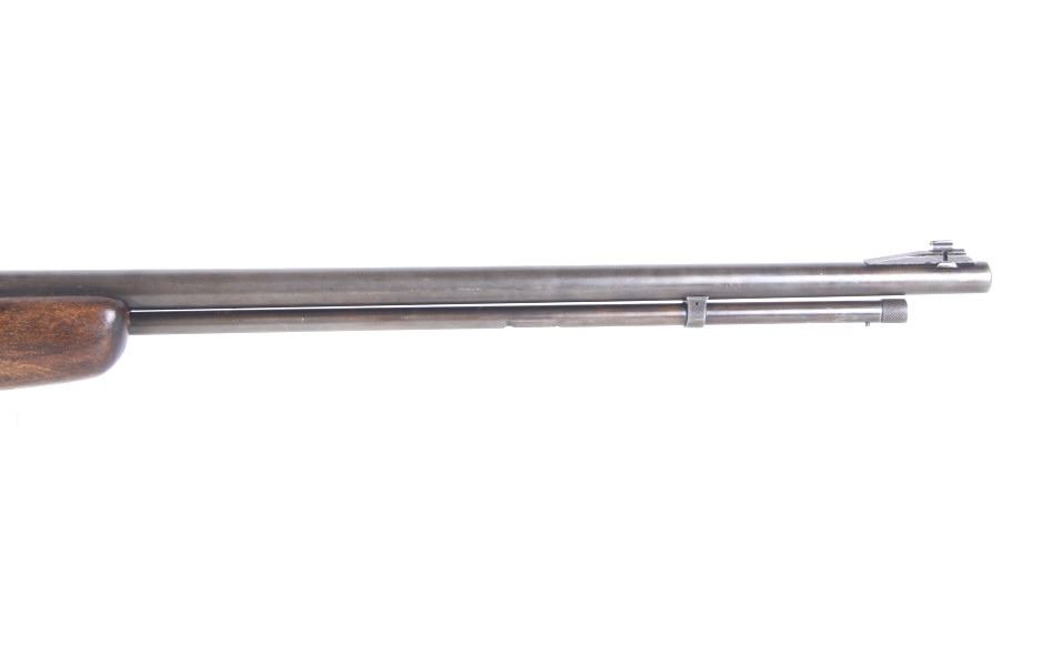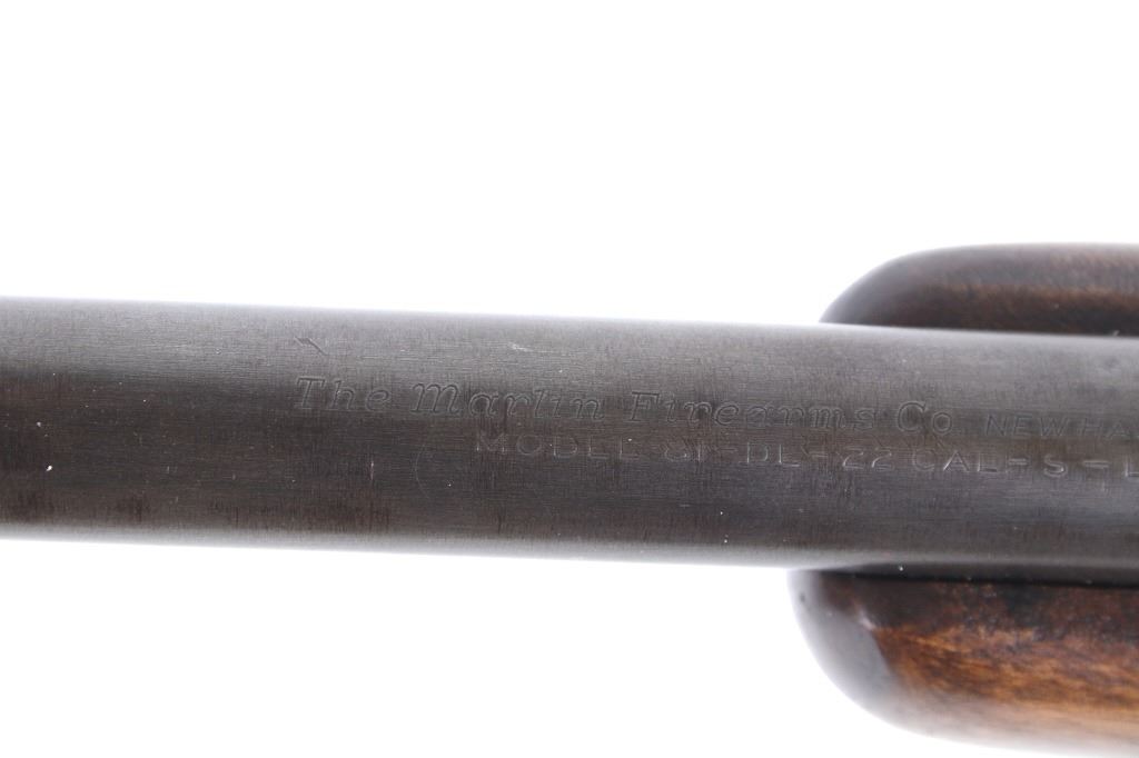 Featured in this lot we have a Marlin Model 81 DL bolt action rifle chambered in .22 long rifle. The rifle displays a 24" long round barrel, bolt action, 17 round under barrel feeding tube, and walnut stock. The top of the barrel is marked "The Marlin Firearms Co. New Haven, Conn. U.S.A. - Est. 1870 Model 81-DL-22 S-L-LR." with the adjustable rear sight marked across the top reading "KING PAT 1922302". The rifle shows good condition overall with some light wear due to age and use. Serial Number: No Serial Number. This firearm qualifies as a Curio & Relic firearm, and requires FFL Transfer or NICS Background Check.