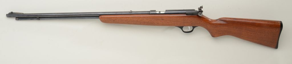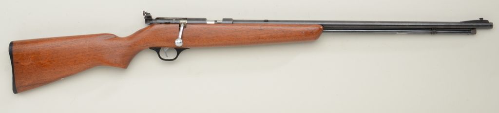 Marlin Model 81 DL bolt-action rifle, .22 short, long and long rifle cal., 24” round barrel, blue finish, wood stock, #NVSN. This gun is in overall good condition showing considerable muted original blue finish, bore should clean to good, crisp action, sharp markings, good wood stock. Est.: $75-$150.