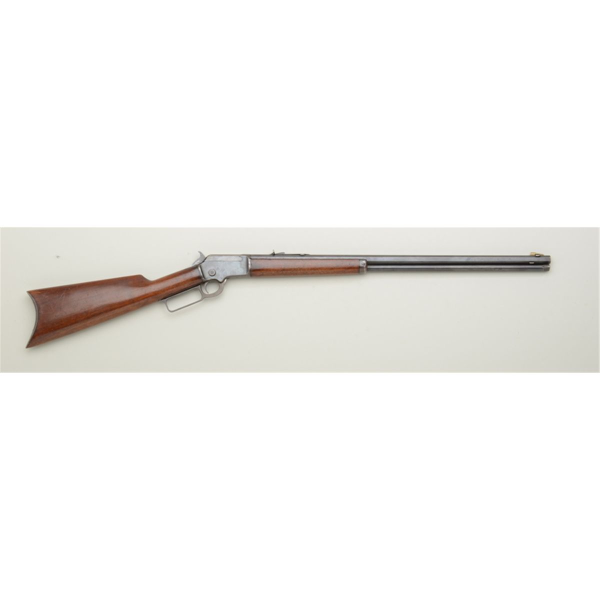 Marlin Model 92 lever action rifle, .32 colt centerfire also with a .32 rim fire firing pin, 24" octagon barrel, full mag. Serial #446588. 85-95% original blue, very good wood, small scratches, normal wear, good sharp barrel address, good action, brightbore, correct front and rear sights. Estimate: $300 - $600
