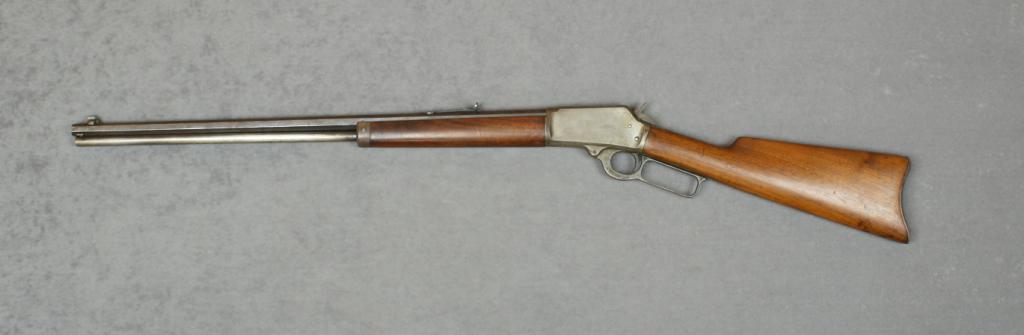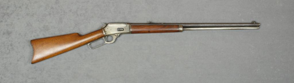 Marlin Model 94 lever action rifle, .25-20 cal., 24” octagon barrel, blue and case hardened finish, wood stocks, #417704. This gun is in overall very good condition showing approx. 35% original blue on barrel andtraces of silvery case color on receiver showing some old cleaning, crisp action and markings, bore should clean to good +, very good to fine wood stocks. Est.: $400-$600.