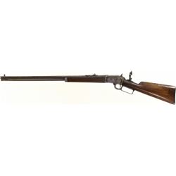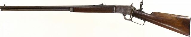 lever action rifle 24" octagon barrel, folding front Lyman and Marbles sporting rear , and tang sights. Blued finish case hardened with walnut stocks. Barrel with 30-40% thinning blue, mag tube gray drifting brown, receiver gray drifting brown and hints of case color, walnut stocks very good, some figural grain to buttstock, extra coat of varnish added, original buttplate with old age crack. Good shooter, great action and bore. Modern. Est. 600-900