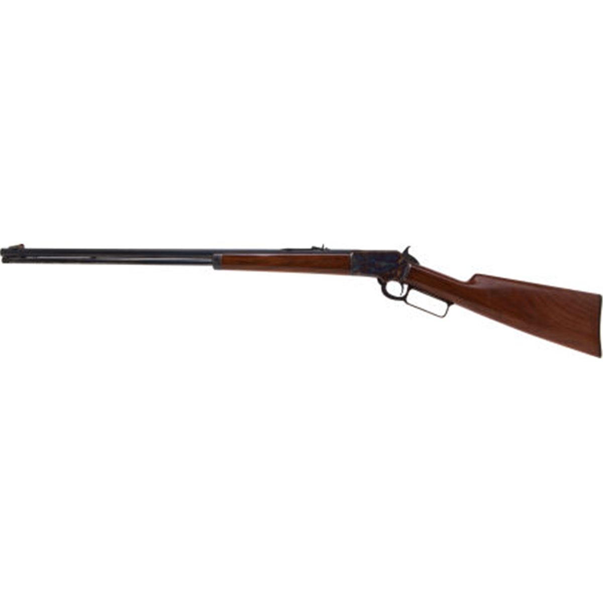 Marlin Model 97 Lever Action Rifle. Serial No. 320525, .22 caliber, 24-inch octagonal barrel with Rocky Mountain bleade type front sight and elevation rear sight. Blued finish. Case-hardened hammer, frame, fore-end cap and lever. Varnished walnut stock and fore-end. Bore good. Condition: Excellent as redone with light handling and storage wear. NRA FIREARMS FOR FREEDOM PROGRAM
