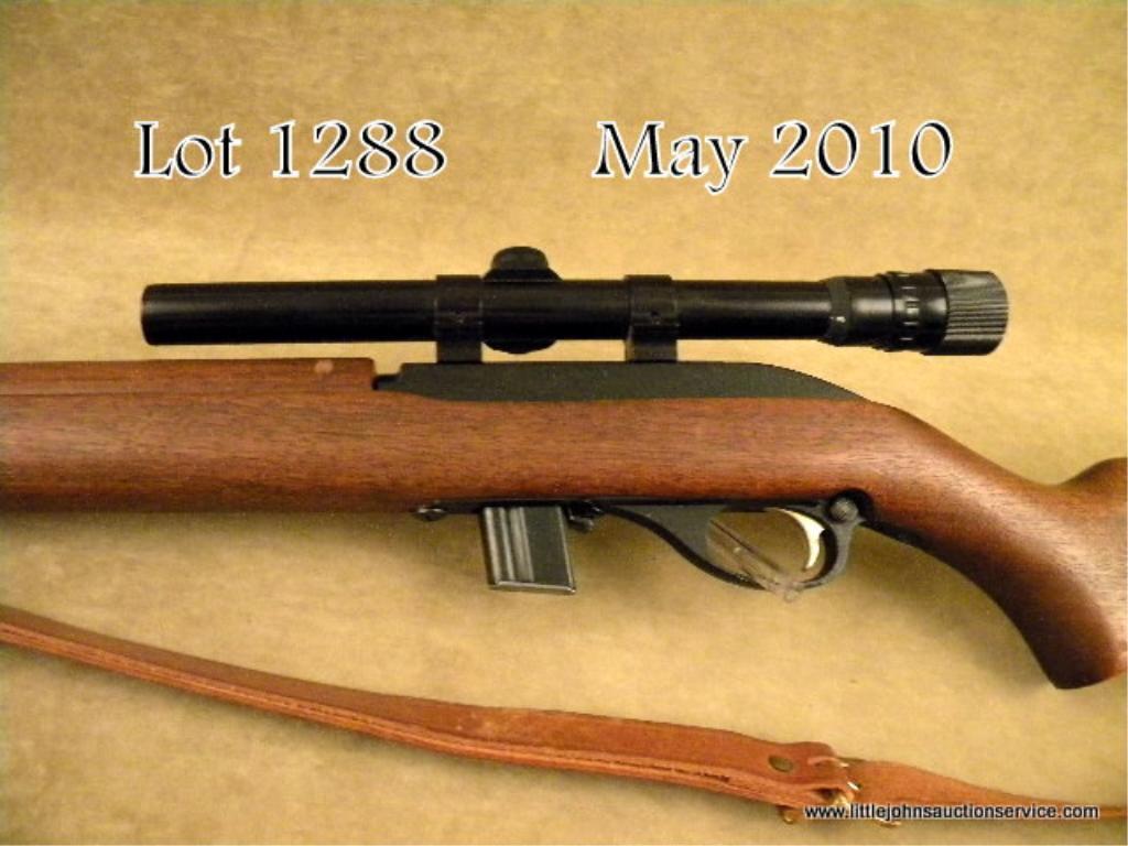 Marlin Model 989 M-2 .22 cal semi-automatic rifle with Weaver scope. Very good plus condition. NVSN. Similar to M-1 carbine style. Est. $75-$150.