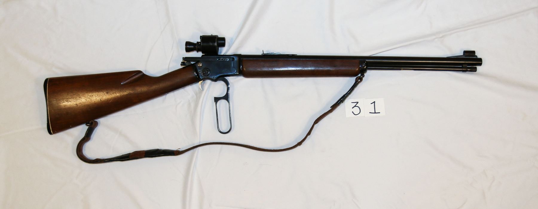Marlin Model: Golden 39-A Mountie Caliber: 22 SL & LR Serial No. R8404 Description: with Boone scope, lever action, tube feed