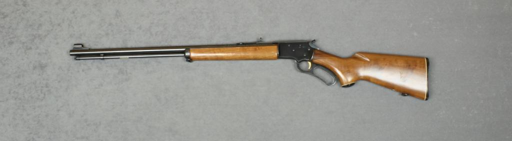 Marlin Original Golden Model 39A lever action  rifle, .22 short, long or LR cal., 24” round  barrel, blue finish, wood stocks, #21267336.  This gun is in excellent condition showing  approx. 98% original finish, fine bore, crisp action and markings, excellent wood; hooded  front sight.  Est.:  $225-$450.