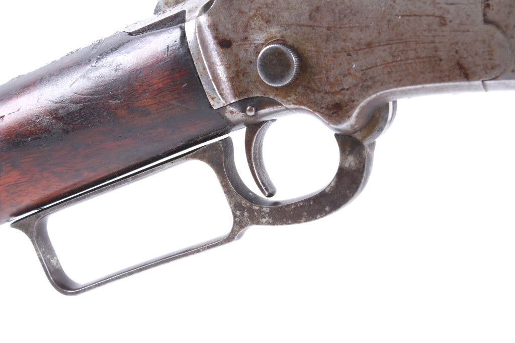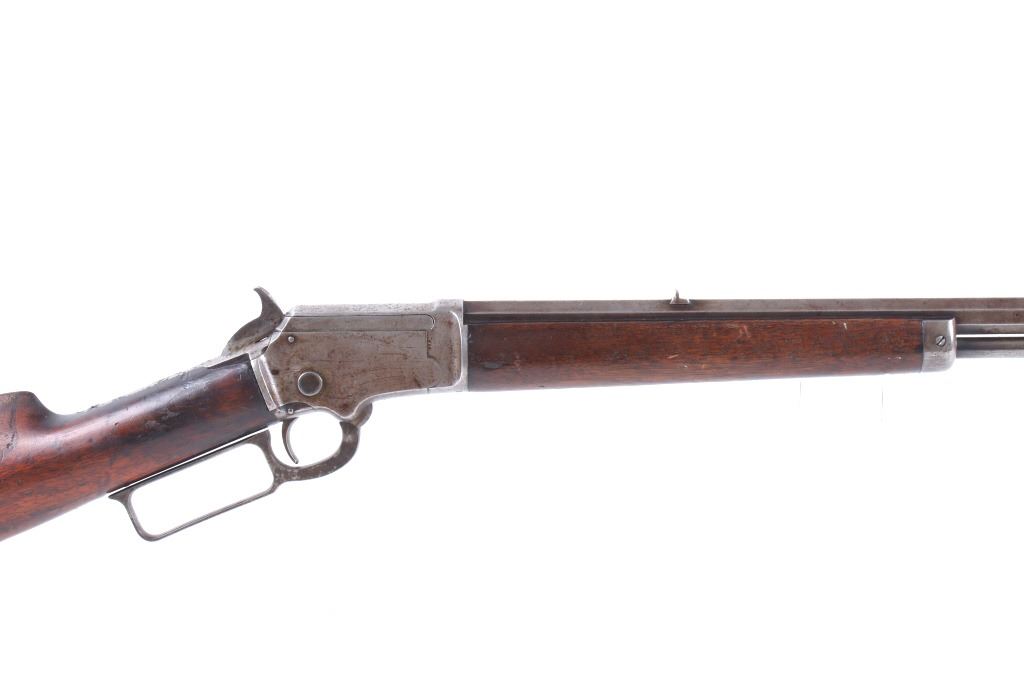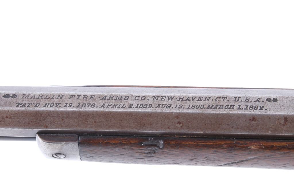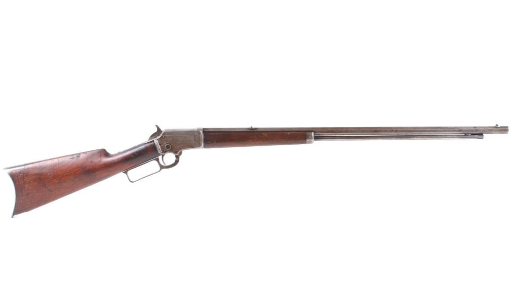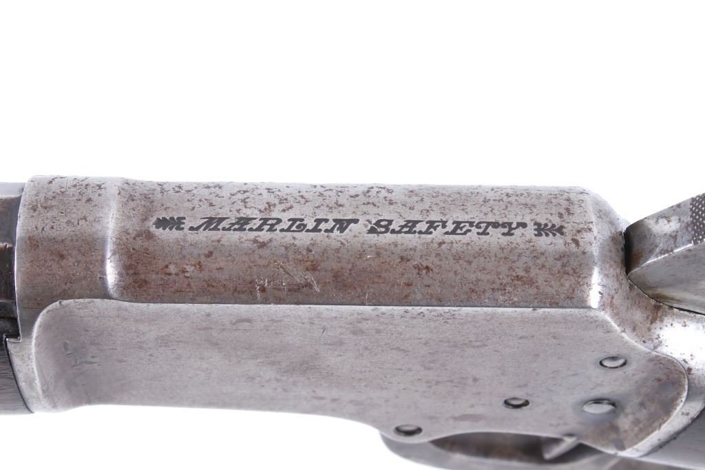 This lot features a great example of a Marlin Safety Model 1892 lever action rifle chambered in 25-20 W.C.F. (Winchester Center Fire) caliber. This rifle was manufactured in 1897. The rifle features a 26" full octagonal barrel, wonderful walnut stocks, blue'd finish, fixed sights and steel crescent buttplate. The Winchester Model 1892 was designed as an improved lever action to compete with this Marlin Safety 1892. The top of the barrel is marked, "Marlin Fire Arms Co. New Haven CT. U.S.A. Pat’d Nov. 19. 1878. April 2.1888. Aug. 12. 1890. March 1. 1892.” The rifle tang is marked, "Model 1892” and the top of the receiver is stamped “Marlin Safety”. Serial Number: 146536. This firearm qualifies as an Antique, and does not require FFL Transfer or NICS Background Check.