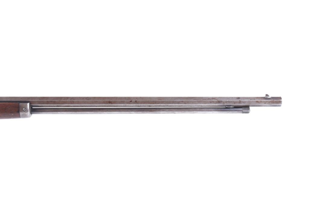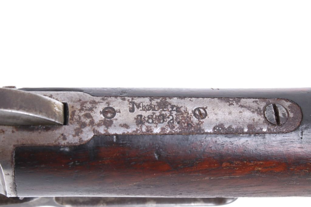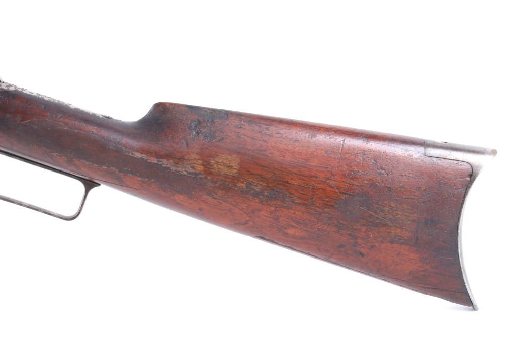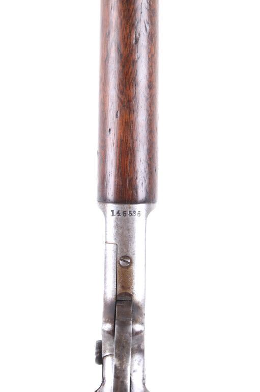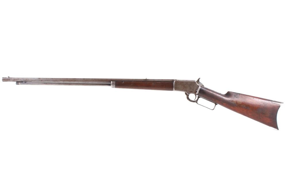 This lot features a great example of a Marlin Safety Model 1892 lever action rifle chambered in 25-20 W.C.F. (Winchester Center Fire) caliber. This rifle was manufactured in 1897. The rifle features a 26" full octagonal barrel, wonderful walnut stocks, blue'd finish, fixed sights and steel crescent buttplate. The Winchester Model 1892 was designed as an improved lever action to compete with this Marlin Safety 1892. The top of the barrel is marked, "Marlin Fire Arms Co. New Haven CT. U.S.A. Pat’d Nov. 19. 1878. April 2.1888. Aug. 12. 1890. March 1. 1892.” The rifle tang is marked, "Model 1892” and the top of the receiver is stamped “Marlin Safety”. Serial Number: 146536. This firearm qualifies as an Antique, and does not require FFL Transfer or NICS Background Check.