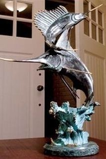 Marlin & Sailfish Bronze Sculpture - 15"H 12"W 6 "D - Great Attention To Detail - Beautiful Finish - Lost Wax Cast