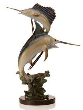 Marlin & Sailfish Bronze Sculpture - 15"H 12"W 6 "D - Great Attention To Detail - Beautiful Finish - Lost Wax Cast