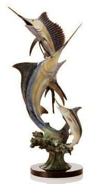 Marlin & Sailfish Bronze Sculpture - 24.5"H 14"W 8 "D - Great Attention To Detail - Beautiful Finish - Lost Wax Cast
