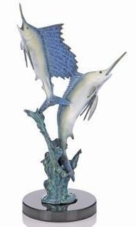 Marlin & Sailfish Bronze Sculpture - 13"H 8.5"W 5 "D - Great Attention To Detail - Beautiful Finish - Lost Wax Cast
