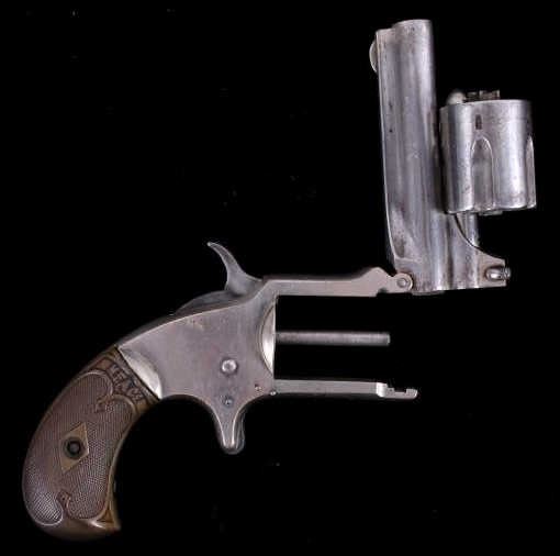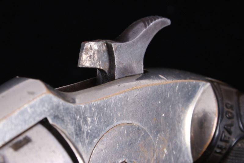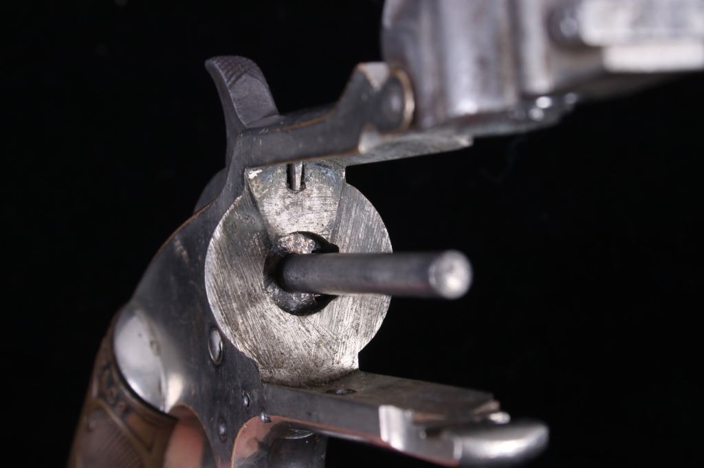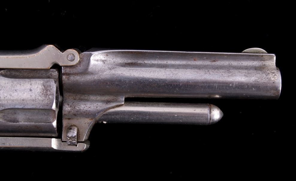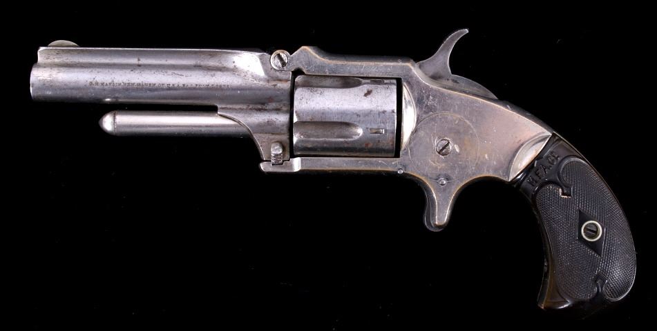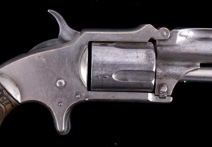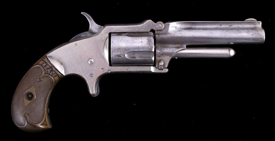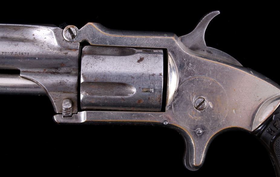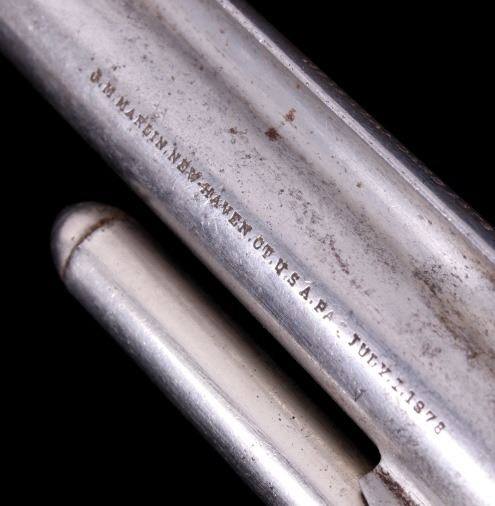 This lot features a Marlin XXX Standard 1872 .32 Rimfire Nickel revolver. The revolver features a 3" barrel, 5 shot cylinder, hard rubber grips, tip up barrel, spur trigger, and nickel finish. About 5,000 XXX Standard revolvers were manufactured by Marlin between 1872 and 1887. This is a great example of a good condition Marlin XXX standard revolver, it shows little wear for its age. The finish has good retention, the grips are absent of any cracking or chipping. The steel barrel has a mellow patina, and the nickel finish is wearing only on the hard edges - exposing the brass frame. The revolver qualifies as an Antique Hand Gun, and does NOT require FFL Transfer or NICS Background Check Serial Number: 7131.