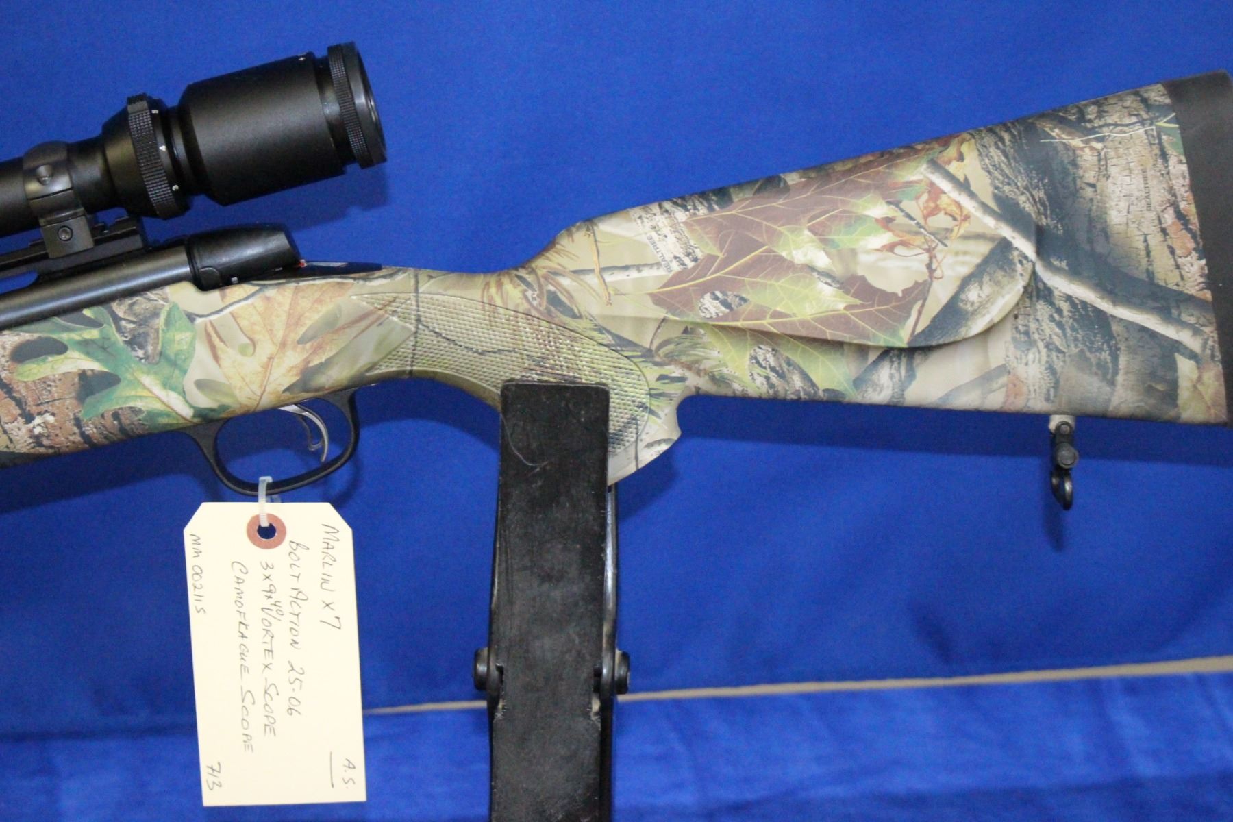25-06 cal; Bolt Action; 22" Barrel; Good, clean bore; w/3-9x40 Vortex Scope; Camo Synthetic Stock; Very Good Condition; S/N MM00211S