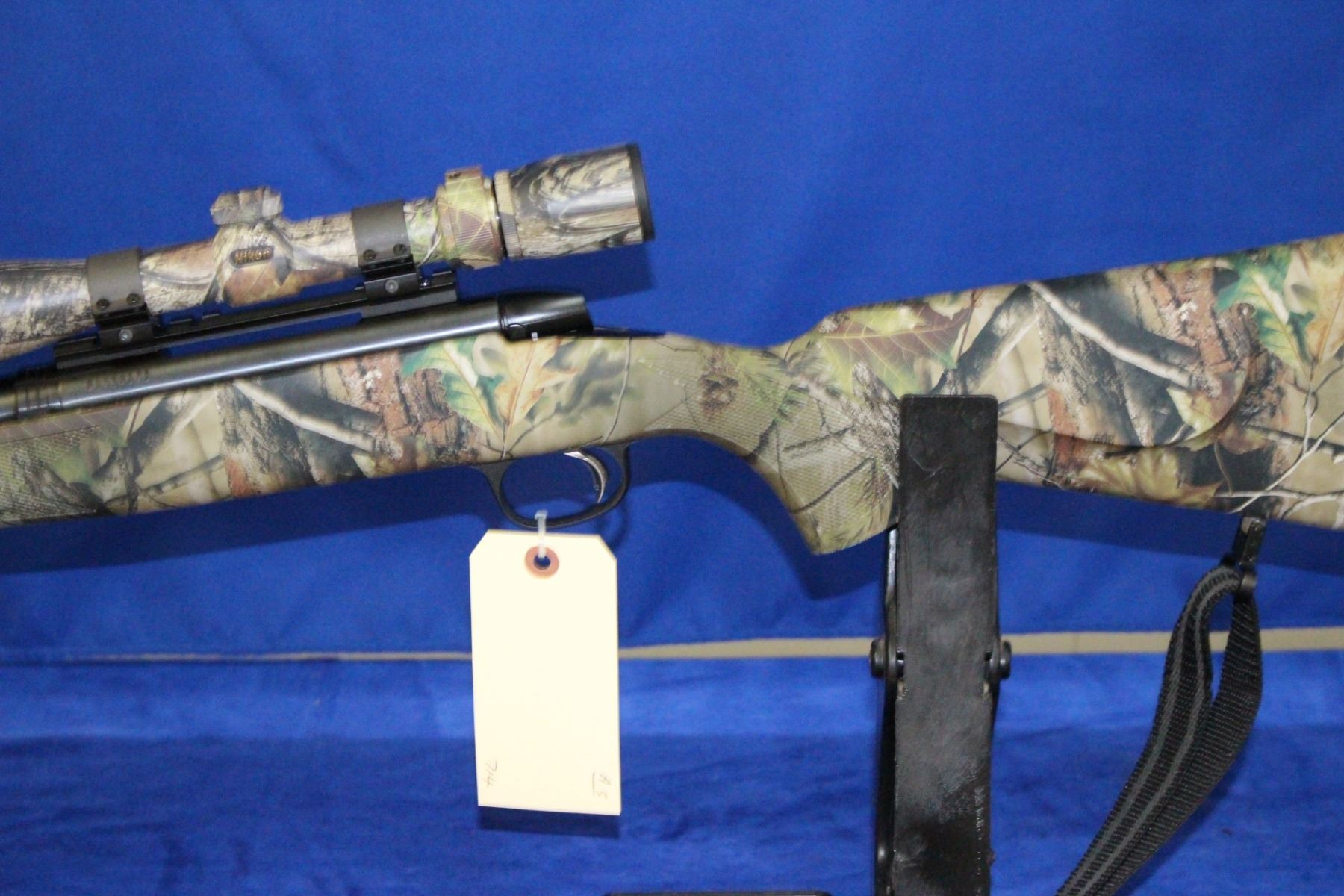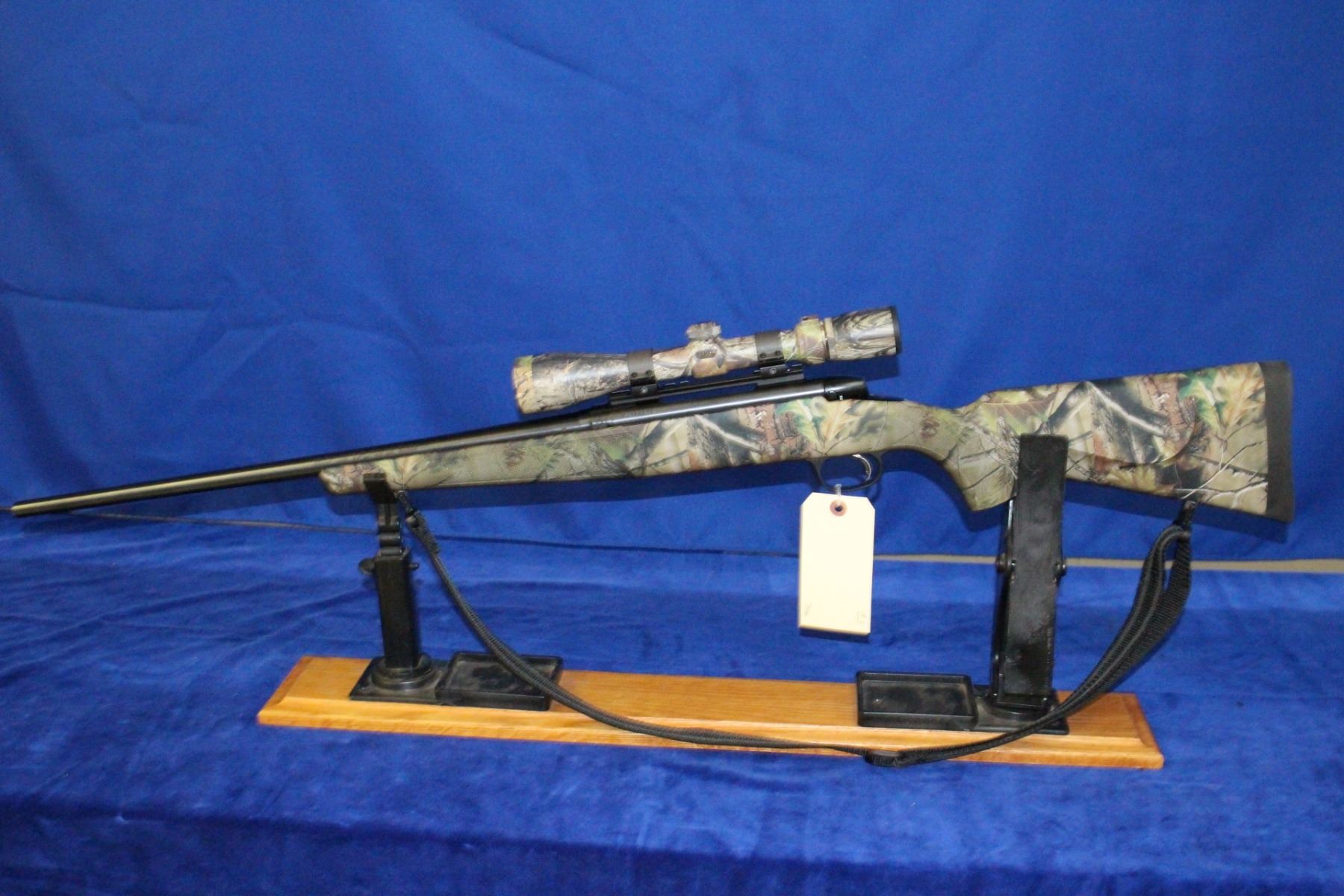270 cal.; Bolt Action; 22" Barrel; Good, clean bore; w/3-9x40 Camo Scope; Synthetic Camo Stock; Very Good Condition; S/N 91724375