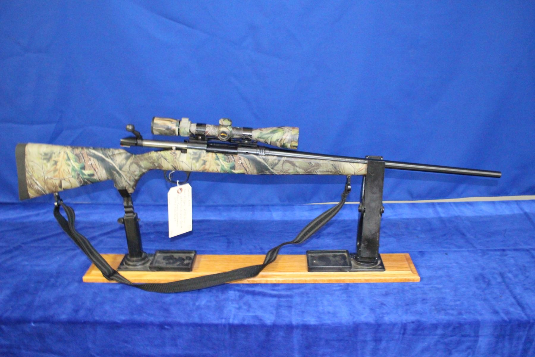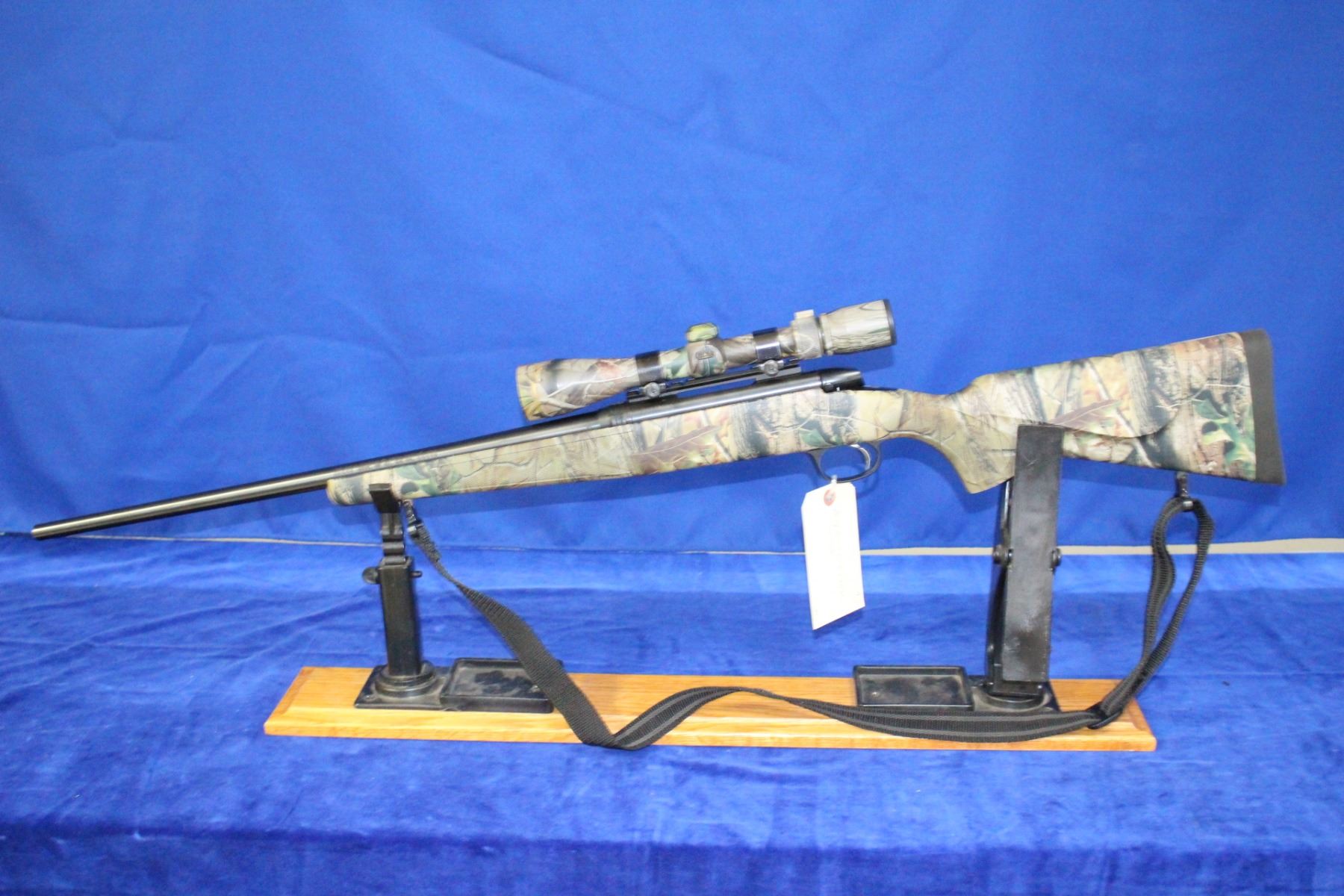 243 Winchester; Bolt Action; 22" Barrel; Good, clean bore; 3-9x40 Camo Nikon Scope; Camo Synthetic Stock; Very Good Condition; S/N 91733389