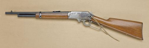 Marlin model 1893 trapper’s model, factory 16” barrel, 3/4 magazine, blue and case hardened finish, saddle ring configuration and carbine sights, standard varnish wood stocks, factory hard-rubber buttplate, innear fine condition. Serial #8280. The barrel shows special smokeless steel marking from early turn of the century and approx. 95-98% original bright blue just slightly thinning and aging. The carbine band shows 90% brightblue, some slight scratches. The frame shows 50-70% case hardening drifting to silver with some vivid rainbow colors on the back, top, and thinning on the sides. The stocks are very good plus to near fine with 80-90%original varnish. The action is crisp, the bore is excellent, and the trapper’s model is near fine overall. Marlin trappers models are very rare, especially with 3/4 (special order) magazines and in this high condition.Est: $3,500 - $7,000