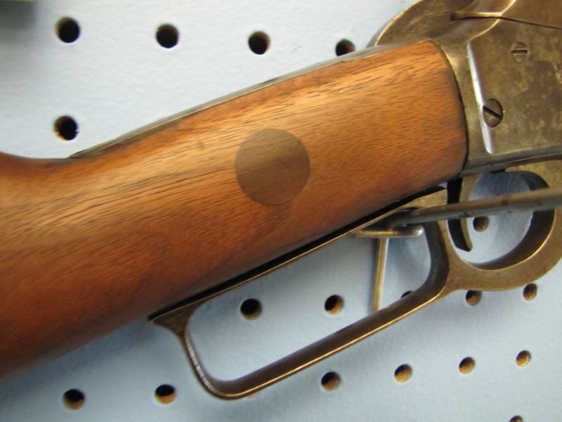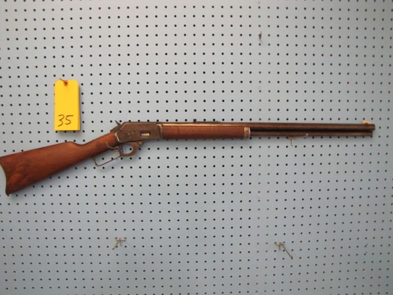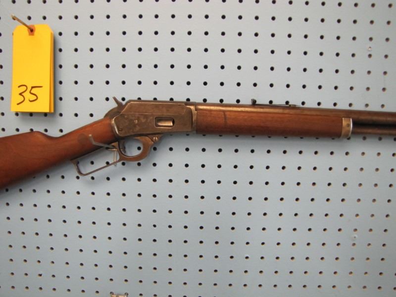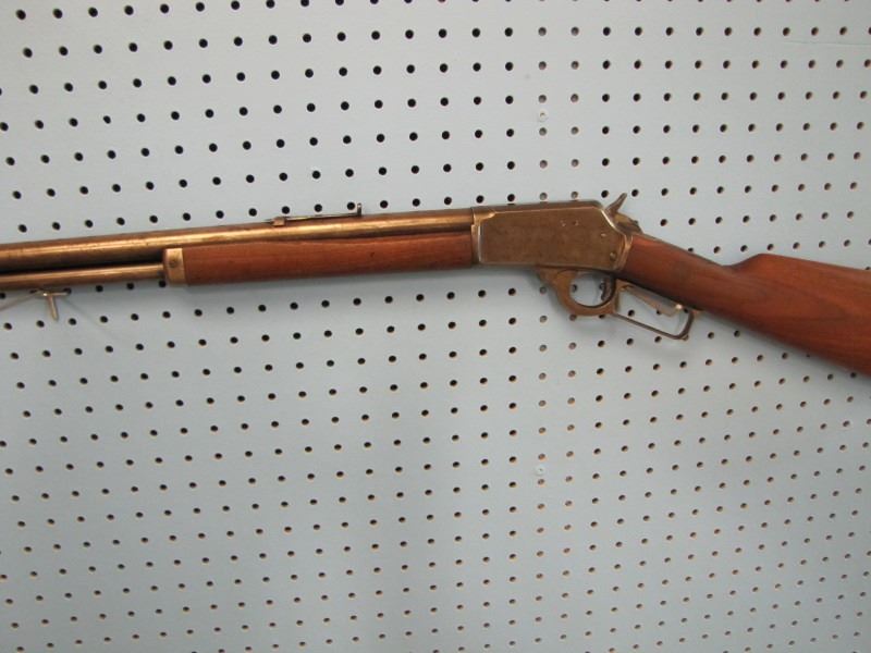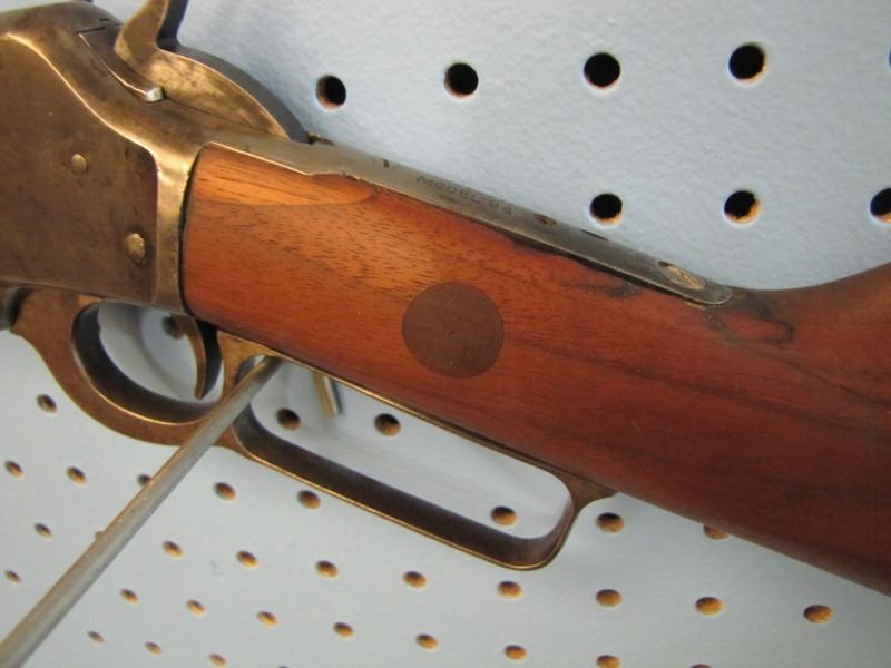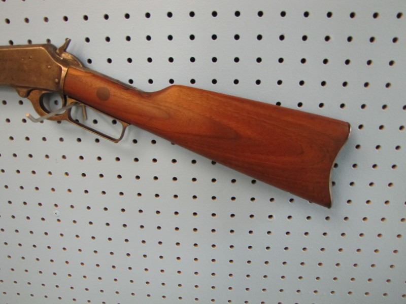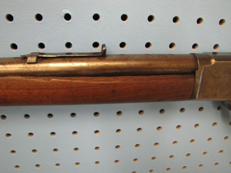 Marlin model 94 lever action 44 - 40 calibre stock looks repaired fore stock has missing wood not original front sight Serial # D75XX --- the website https://oldguns.net/sn_php/marlinlookup.php shows The year of manufacture for serial number 75XX is 1884.