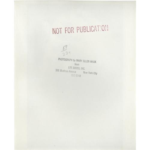 <B>Marlon Brando "Apocalypse Now" Set Photo by Mary Ellen Mark.</B></I> A smaller, 8" x 10" b&w glossy print of the close-up of Marlon Brando with his hand resting on his shaved head, taken by photographer Mary Ellen Mark on the set of <I>Apocalypse Now.</B></I> In Excellent condition with Mark's studio stamp on the reverse side. <I>From the collection of Marlon Brando.</B></I>