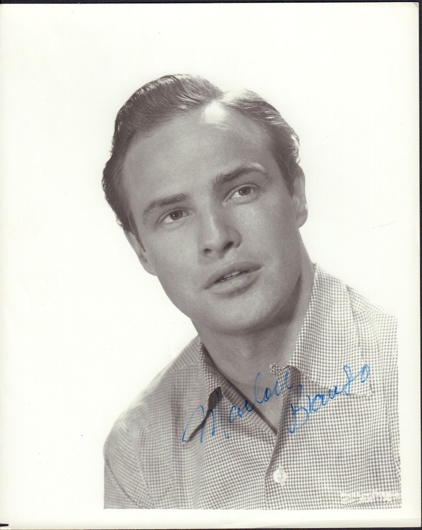 Black and white 8x10 photograph signed by Marlon Brando. The photo has been beautifully signed in blue ink. All items come with a certificate of authenticity good for the life of the piece.
