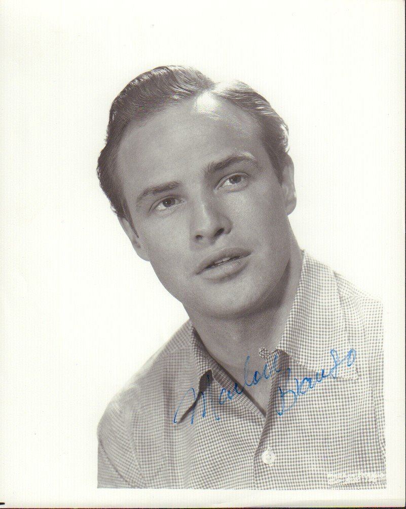 Black and white 8x10 studio photo signed by Marlon Brando. All items come with a certificate of authenticity good for the life of the piece.