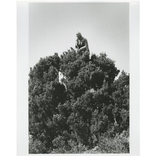 <B>Marlon Brando Up a Tree in "The Missouri Breaks" Photo.</B></I> A great 11" x 14" silver gelatin print of Marlon Brando as Robert E. Lee Clayton, perched atop a tree in Arthur Penn's <I>The Missouri Breaks,</B></I> taken by photographer Mary Ellen Mark. In Excellent condition with Mark's studio stamp on the reverse side. <I>From the collection of Marlon Brando.</B></I>