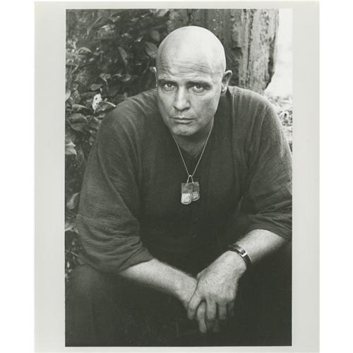 <B>Marlon Brando as Colonel Kurtz Photo by Mary Ellen Mark.</B></I> A 8" x 10" glossy Marlon Brando as Colonel Kurtz, taken by photographer Mary Ellen Mark on the set of <I>Apocalypse Now.</B></I> In Excellent condition with Mark's studio stamp on the reverse side. <I>From the collection of Marlon Brando.</B></I>