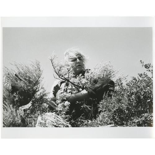 <B>Marlon Brando in "The Missouri Breaks" Photo.</B></I> A very nice 11" x 14" silver gelatin print of Marlon Brando as Robert E. Lee Clayton, barefoot and with a pair of binoculars, taken by photographer Mary Ellen Mark on the set of Arthur Penn's surreal Western <I>The Missouri Breaks.</B></I> In Excellent condition with Mark's studio stamp on the reverse side. <I>From the collection of Marlon Brando.</B></I>