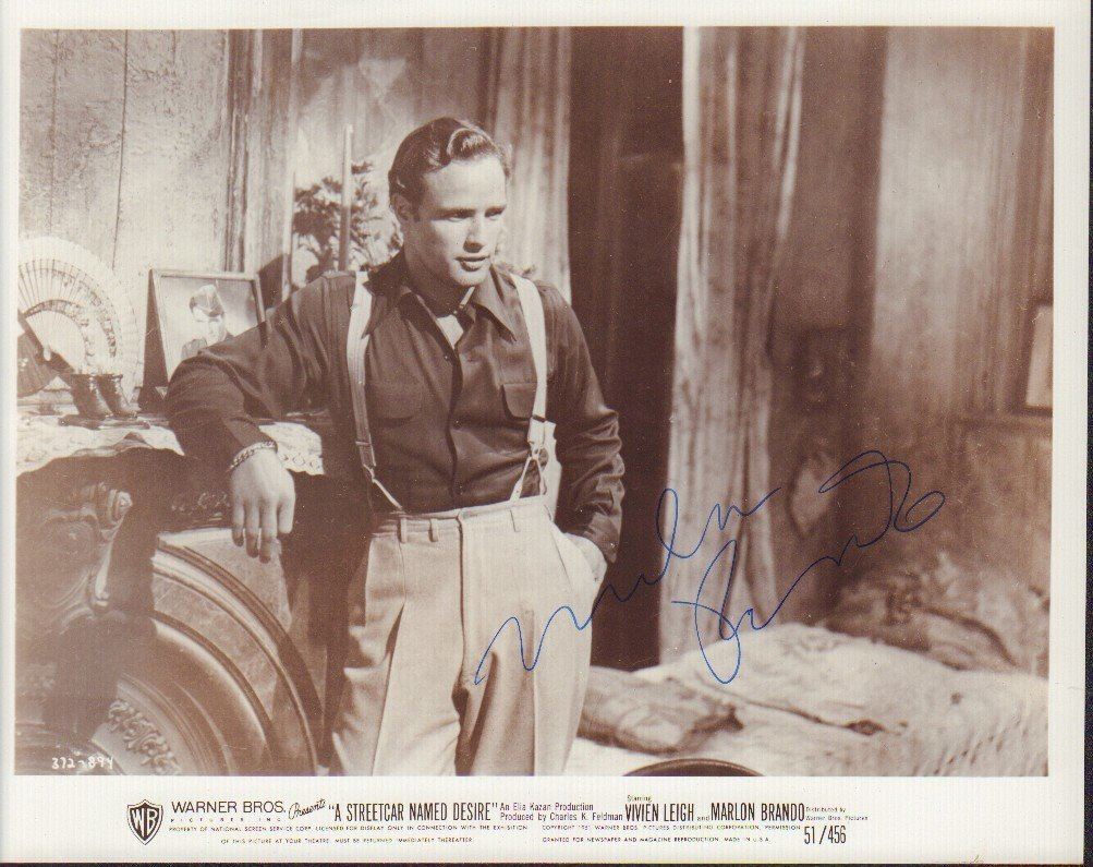 A rare original sepia toned still from Streetcar Named Desire signed in blue fountain pen ink