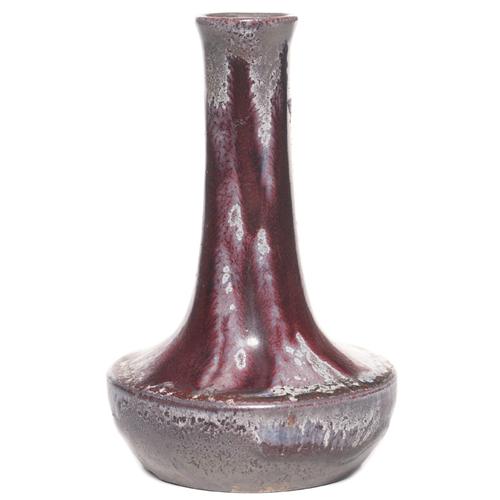 Marlotte vase, small form with flared bottom covered in a red, gray and purple matt, marked, 6"h, factory base chips and factory flaw at rim